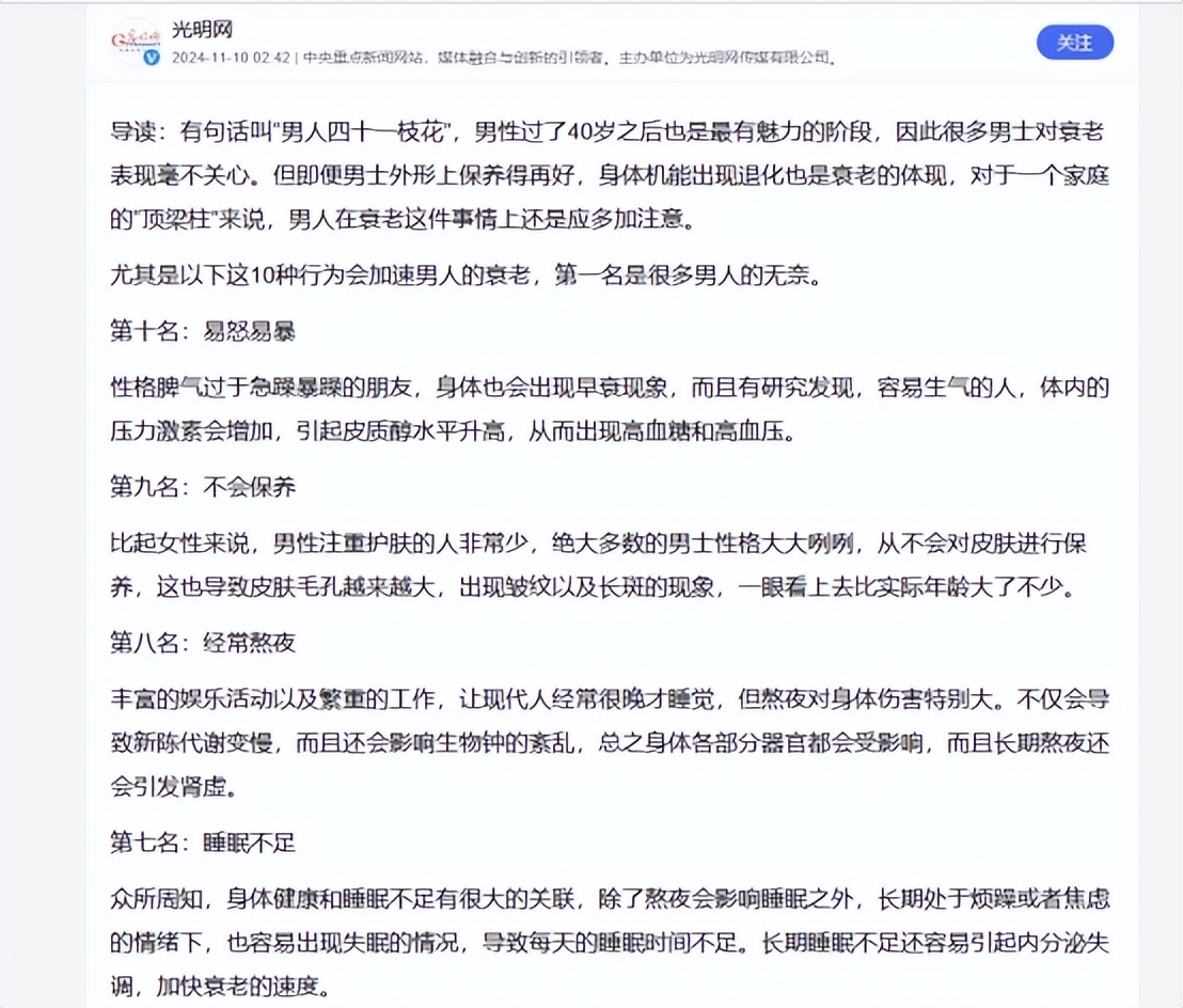 坏习惯加速老化要说加快男性衰老的原因,喝酒只能排到第7位,很多人觉得喝点小酒能活血,是个不错的习惯。
