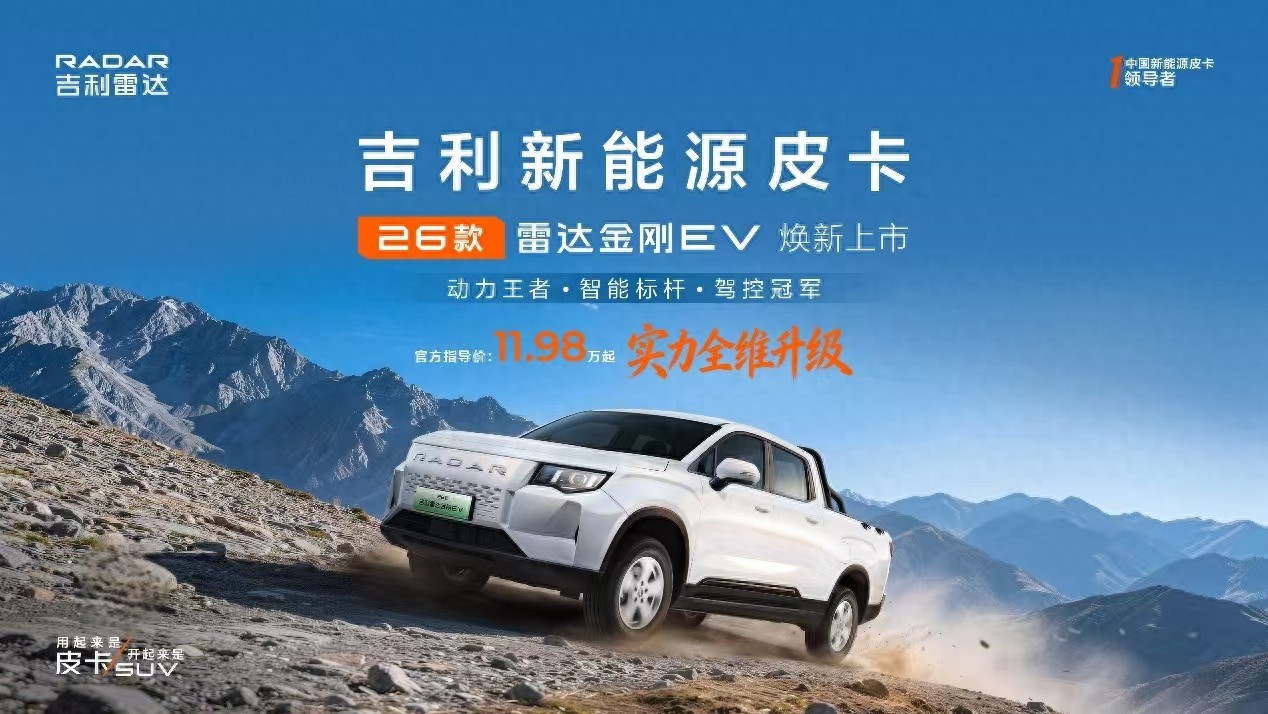 从动力革新到智能重构,从驾控升级到场景赋能,2026款吉利雷达金刚 EV以三大核心标签、六大标杆实力,重新定义经济型纯电皮卡标准。未来,吉利雷达将持续坚持“纯电 + 电混”双技术路线,深耕用户场景、引领技术创新,推动中国新能源皮卡全球化发展,让更多用户享受到“更有劲、更智能、更好开、更省钱”的纯电皮卡价值,与千万创富者同行,共赴高效、可靠、绿色的出行新时代。