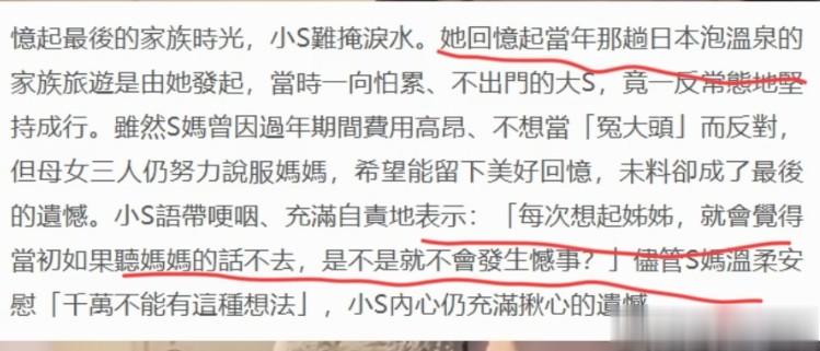 没想到却在旅游途中大s生病,一家人当时都慌了手脚,根本不知道应该怎么应对,就这样眼睁睁看着姐姐的生命流逝,对她来说真的很残忍。