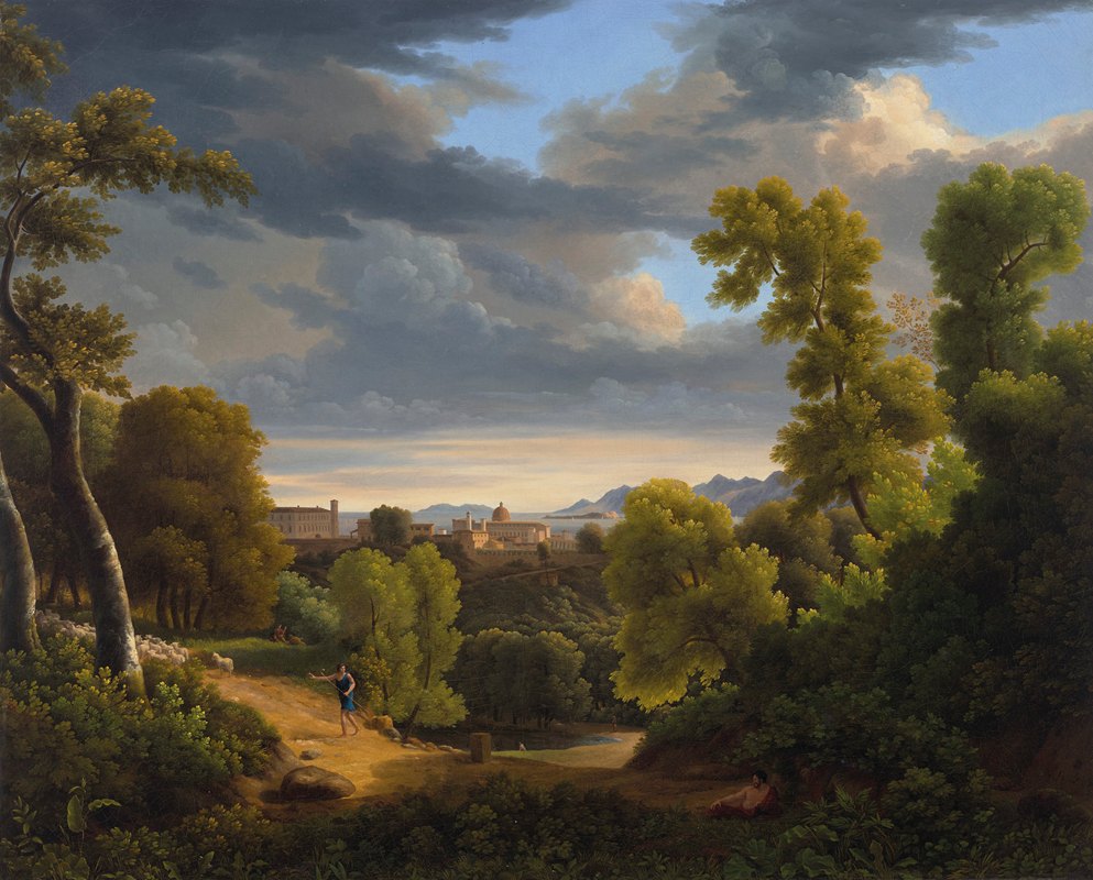 当我们凝视让-约瑟夫・泽维尔・比道尔的画布,仿佛踏入了一段被精心封存的静谧时光。这位19世纪初的法国画家,以其沉静典雅的笔触,在新古典主义的殿堂中,为风景画开辟了一片诗意盎然的疆土。