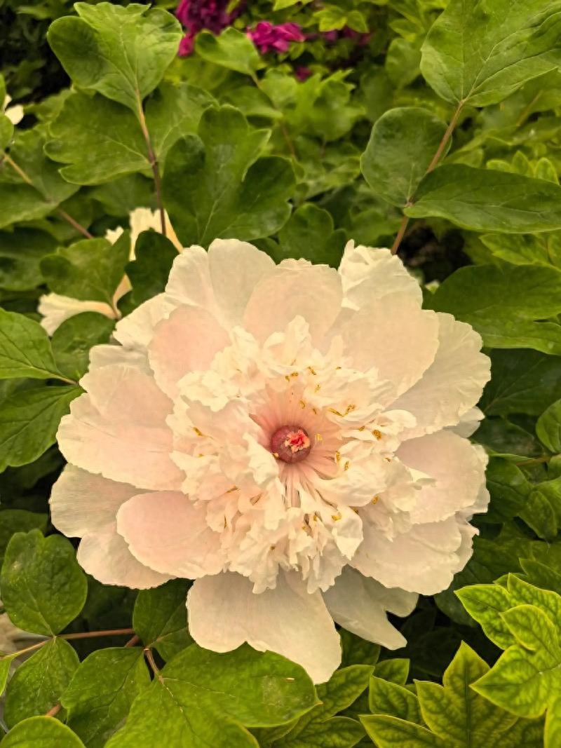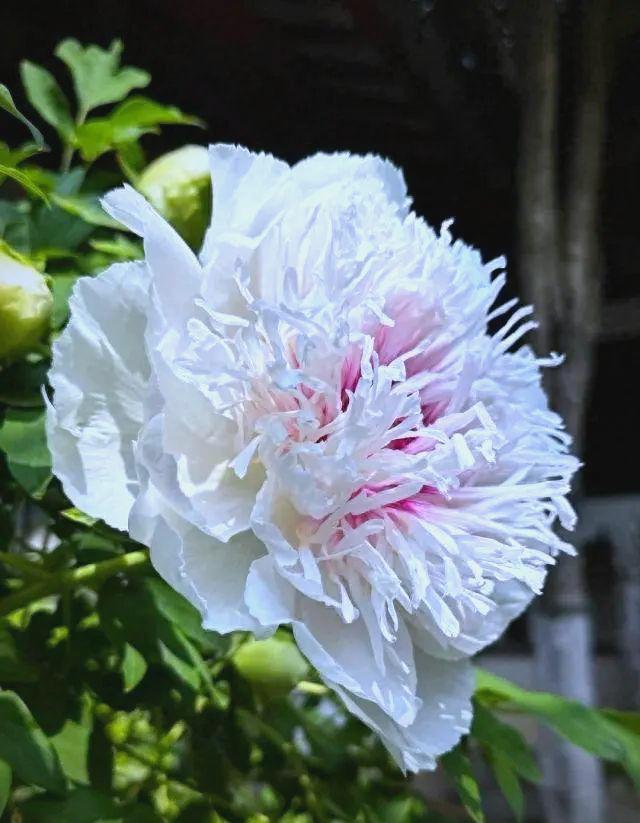 · 银丝贯顶:洛阳“顶流”,晚开品种,洛阳市区仅此1株,位于隋唐城遗址植物园。内瓣细长如丝,为粉白色托桂型。有保安装扮“带刀侍卫”24小时轮流守护,每人限观赏30秒。