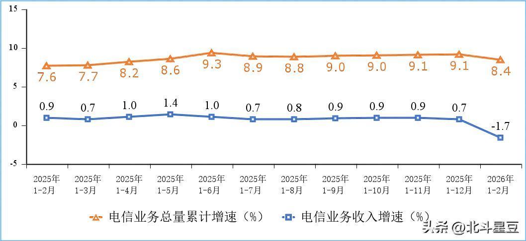 今年前两个月,虽然电信业务总量依旧保持增长,但电信业务收入累计完成2904亿元,同比下降1.7%,增速由正转负。