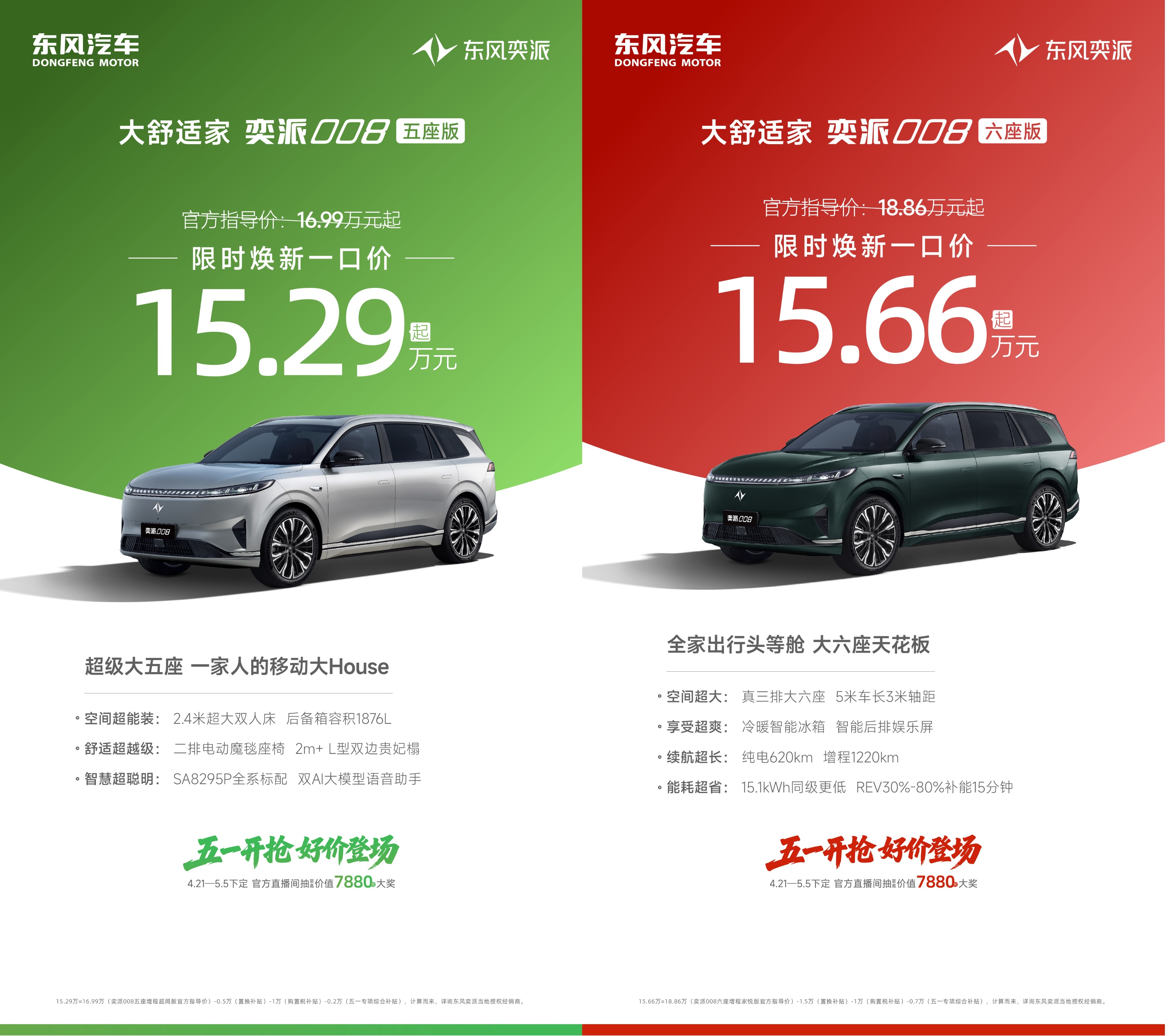 全场景车型、全人群适配、全维度福利,东风奕派五一限时盛典,只为让每一位消费者都能轻松拥有心仪座驾。4月21日至5月5日,全国东风奕派线下门店静候莅临,锁定专属钜惠,抽取豪华好礼,奕起开启美好出行新篇章!