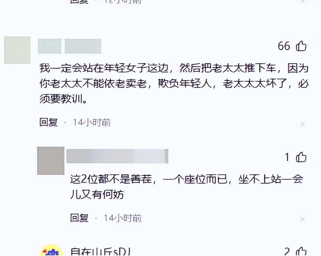 在她看来,老年人出门,就该被特殊对待,不管车厢是否有空位,年轻人都必须无条件礼让老人。