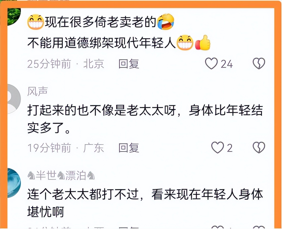 抱着这样的心态,老太的语气越来越冲,话语也越来越尖锐,不断念叨年轻人缺乏素养、自私不懂礼让。