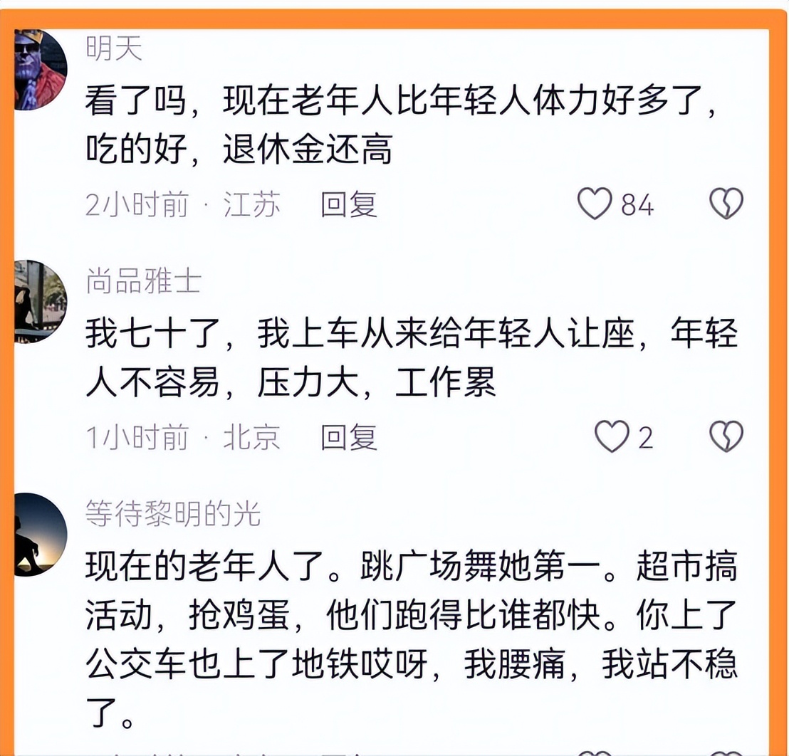 还有网友更理性:当下,成年人的压力实在太大,部分老年人必须要摒弃“倚老卖老”的心思,多多体恤年轻人的不容易。