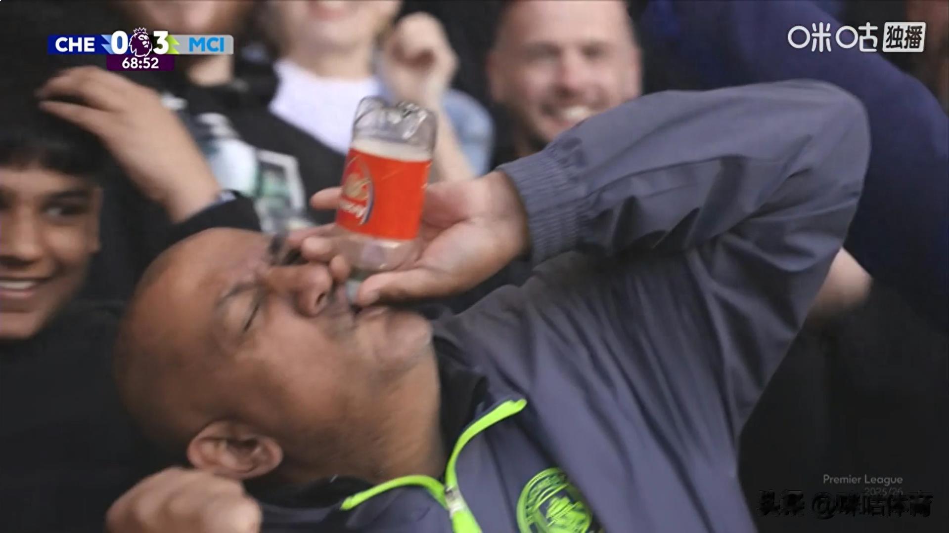 北京时间2026年4月12日23:30,英超第32轮,曼城客场3-0战胜切尔西。在多库为曼城将比分扩大至3-0后,看台上一名极具镜头感的曼城球迷,举起印有阿森纳队徽的瓶子“对瓶吹”,浮夸的表情和动作瞬间走红网络。这名爆红的球迷名为塔尔·拉赫曼,他近日接受了《镜报》的采访。