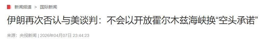 2.2026.04.07-《伊朗再次否认与美谈判:不会以开放霍尔木兹海峡换“空头承诺”》-央视新闻
