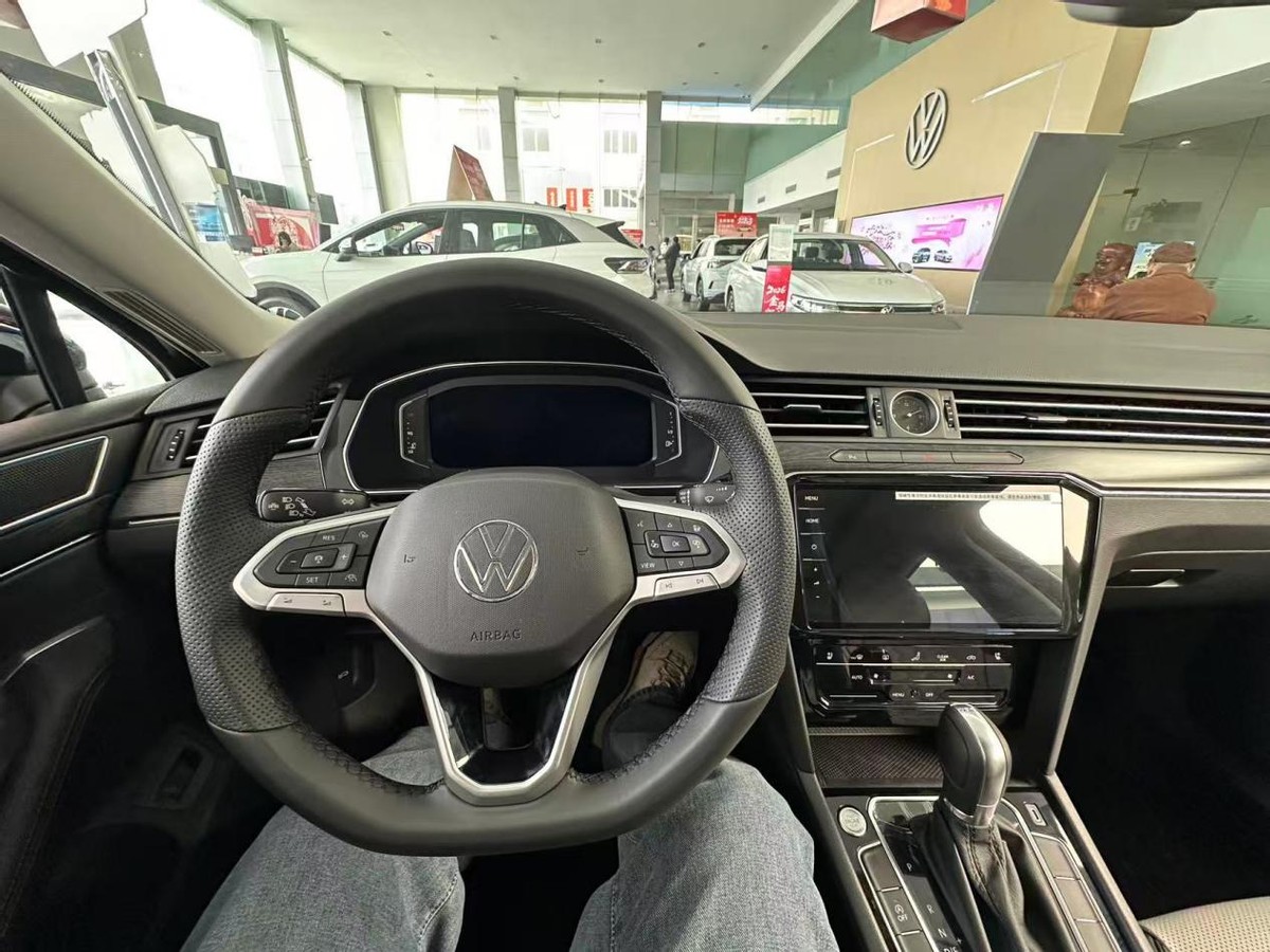 坐进到车里,这辆迈腾B8的内饰和它的外形相同,给人的感觉就比较稳重大气。整个内饰以黑色为主,像仪表台、车门不问应用了桃木和银色亮条,让内饰看起来不会太单调。它的中控屏尺寸放在今天来看有点小,低配的是8英寸,高配的是9.2英寸。如果你比较在意功能性和视觉效果,迈腾B9的内饰是更容易满足这一要求的,屏幕的分辨率达到了2K,车机还支持5G网络,同时副驾也有屏幕,对比新能源也是不差的。