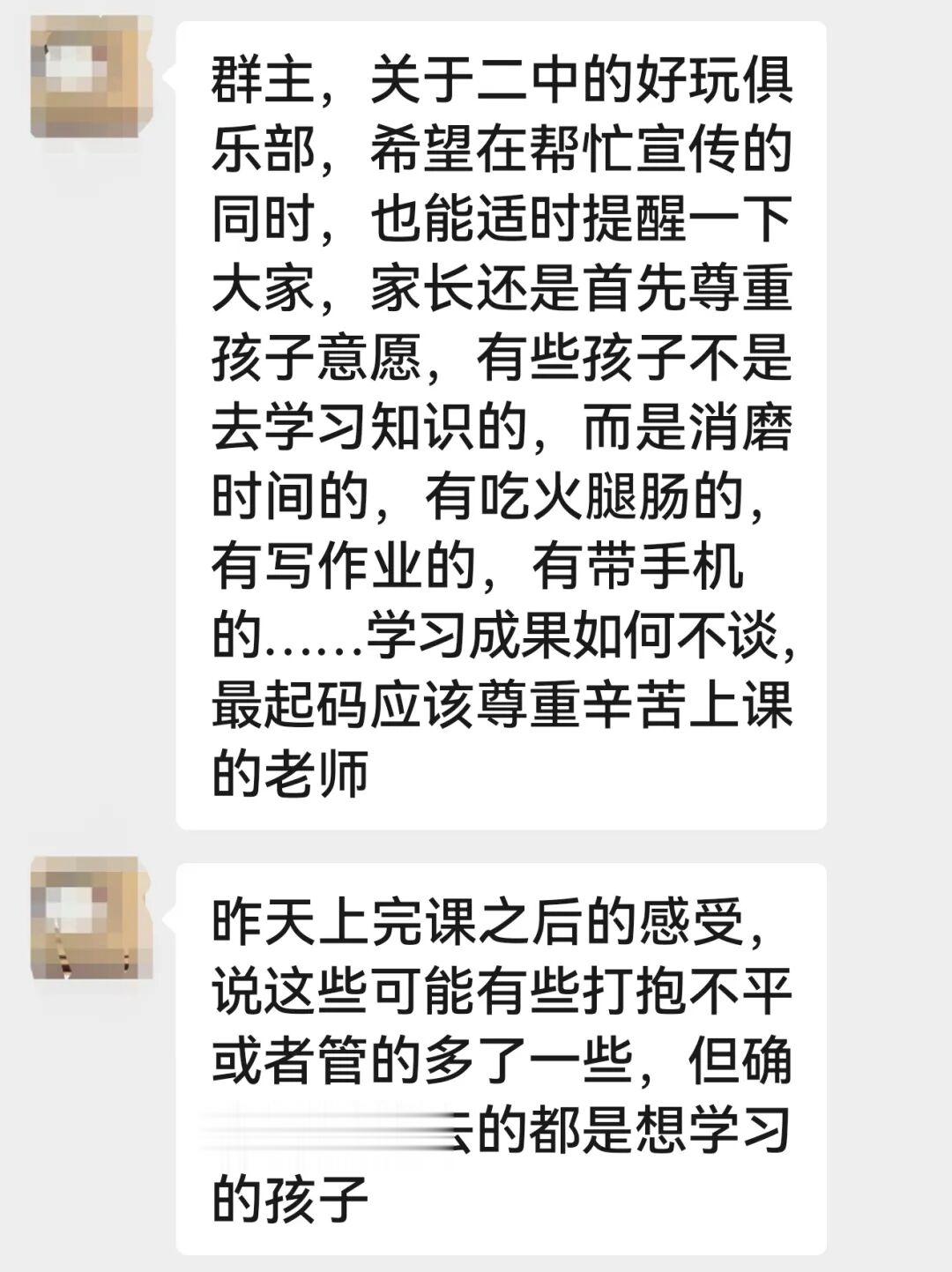 不少送娃来“好玩”的家长,其实也察觉到了这样的问题了。上周,就有家长跟我反馈,有些孩子可能是被家长硬逼着来学的,课上根本无心听讲:有人玩手机、有人啃火腿肠、还有人偷偷写作业,全程浑水摸鱼。说到底,就是课堂难度与孩子学习水平的严重错配。同时,二中老师也发现了这个问题,因此搞这场测评就是精准筛选,那些数学工具、物理前置基础没打牢的;只听不练、敷衍了事的;没兴趣、被家长生拉硬拽来的,都可能暂别“好玩俱乐部”这个平台。