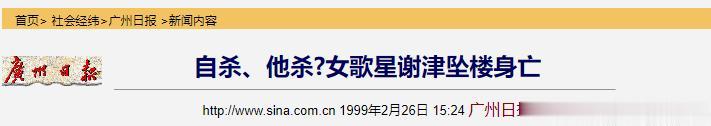 广州日报:自杀、他杀?女歌星谢津坠楼身亡