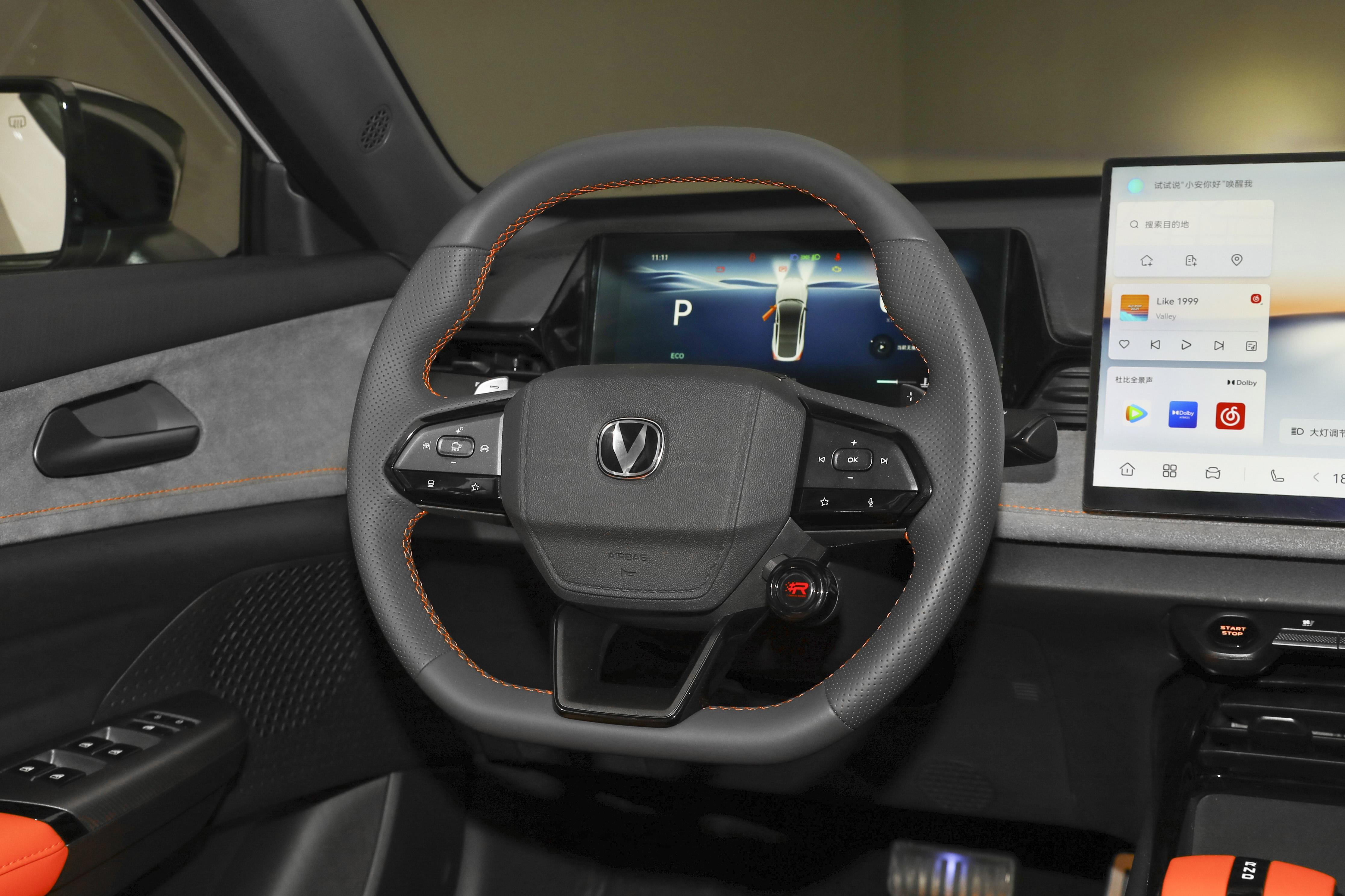 内饰整体采用橙灰双拼配色,再加上橙色缝线与皮质材料的点缀,营造出了一种运动又温馨的氛围。方向盘上还有 “SUPER RACE 3.0” 按键,这可是个好玩的设计。只要你按下这个按键,就能切换专属赛道音乐、音效等,瞬间让你仿佛置身于赛车场,驾驶变得更有激情。除了基础配置外,1.5T 尊贵运动型和 2.0T 劲擎型还增加了换挡拨片、运动外观套件。