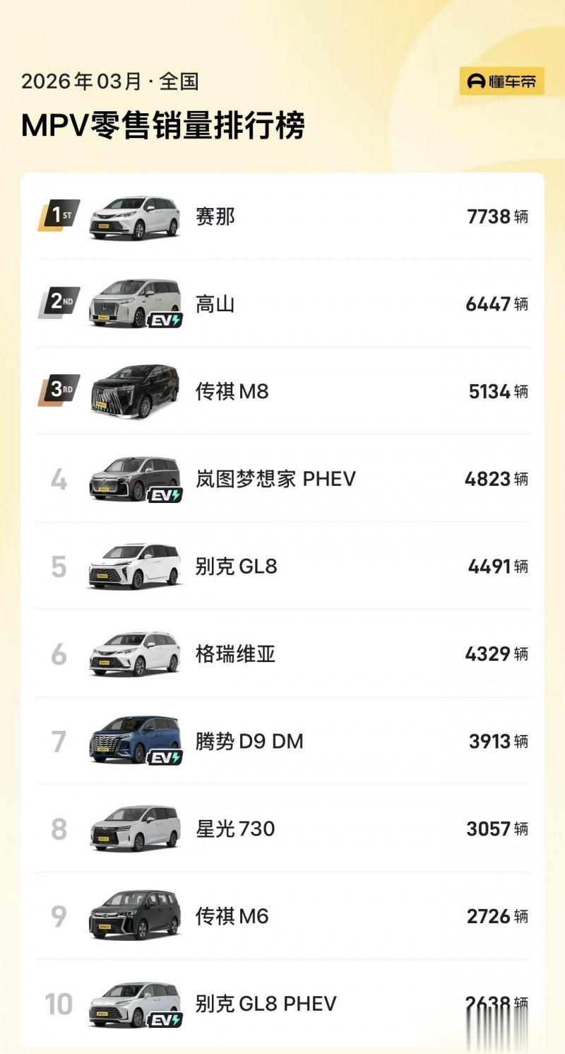 MPV市场中,赛那的表现同样不容小觑,3月销量7738台,成功斩获全品类MPV销量第一,全球累计超400万台的销量,足以说明它的市场认可度。作为一款历经全球市场检验的车型,其空间设计、动力调校、品质控制等方面,都体现了广汽丰田成熟的工业制造水平,这款车型的空间布局和舒适性,一直是用户追捧的核心亮点,不管是家庭出行还是商务接待,都能展现出不俗的实力。