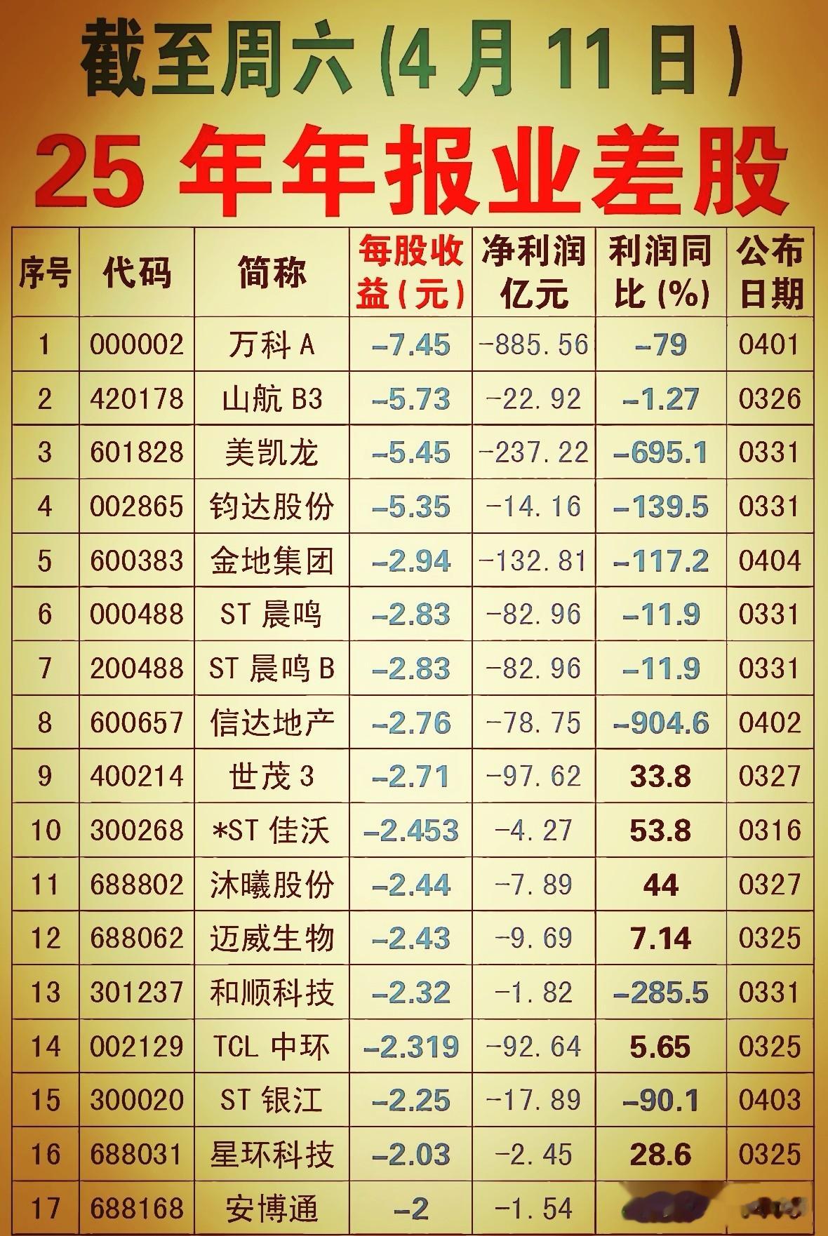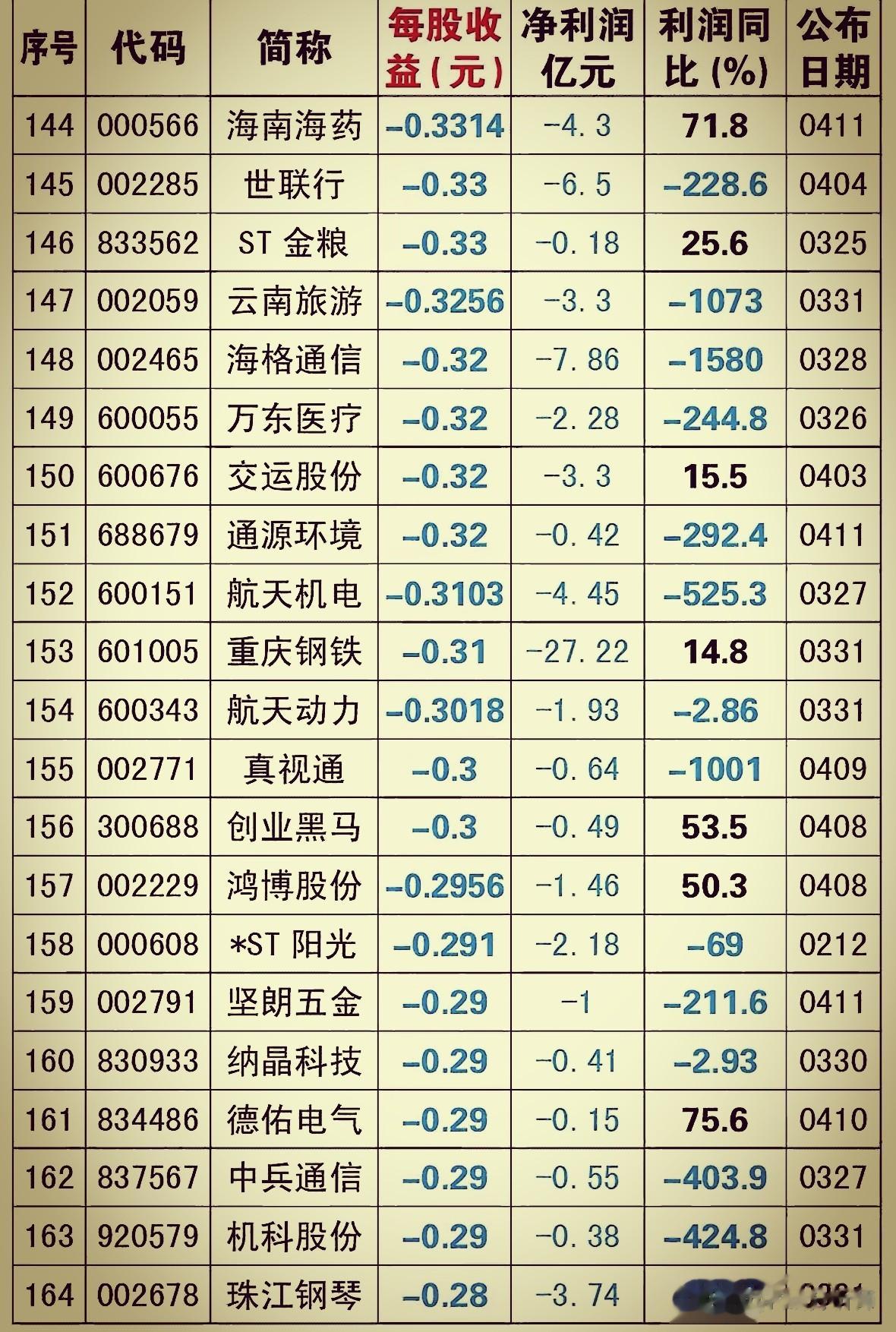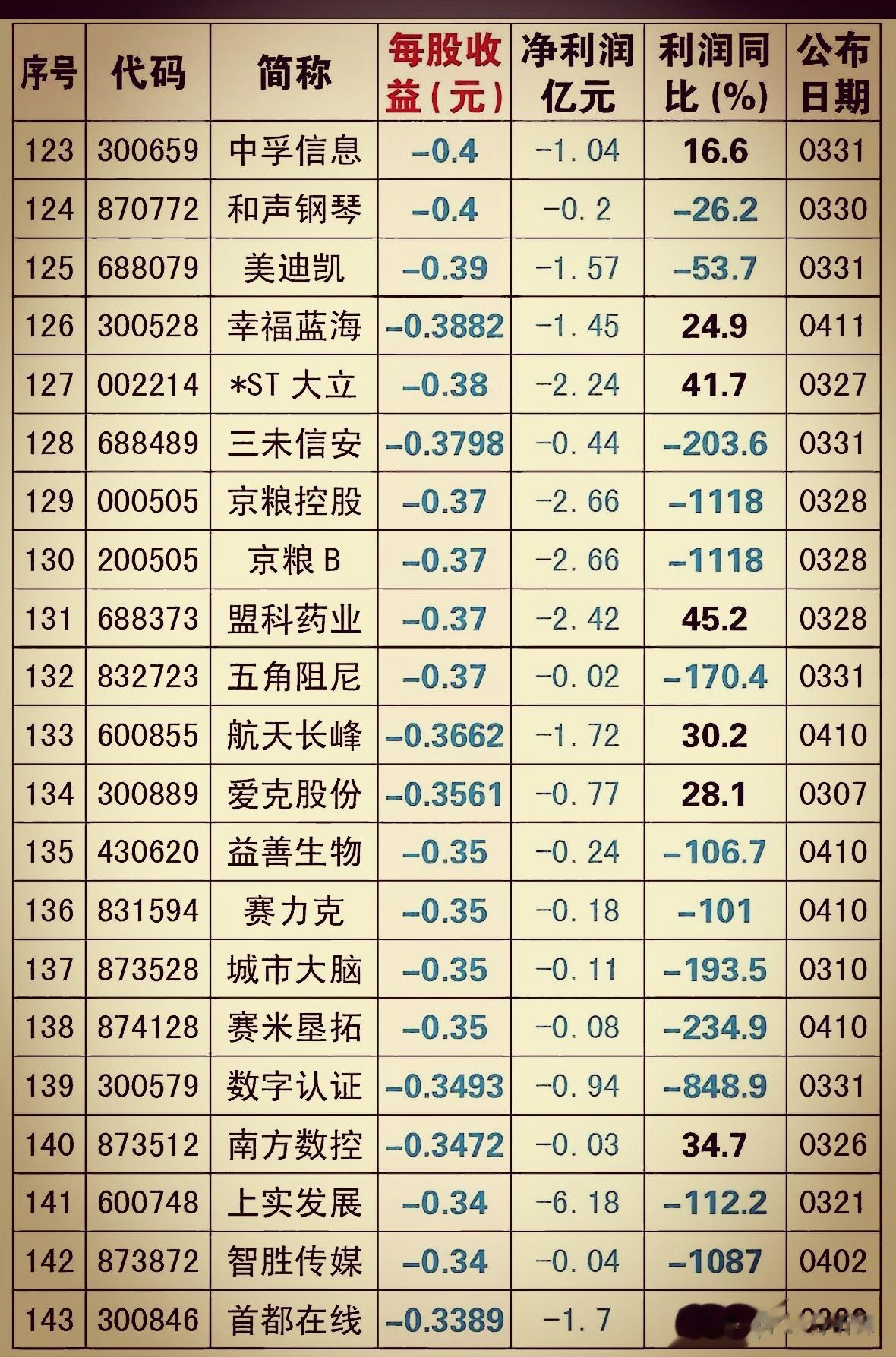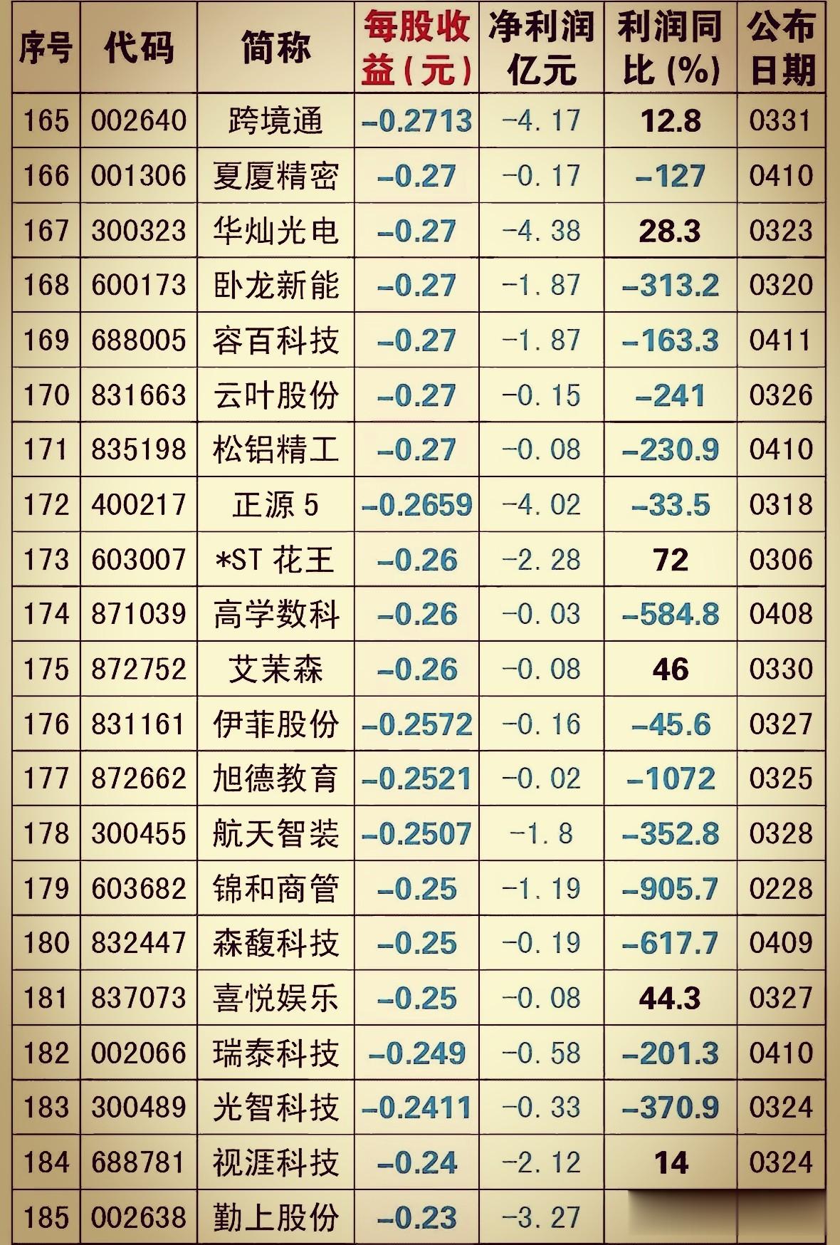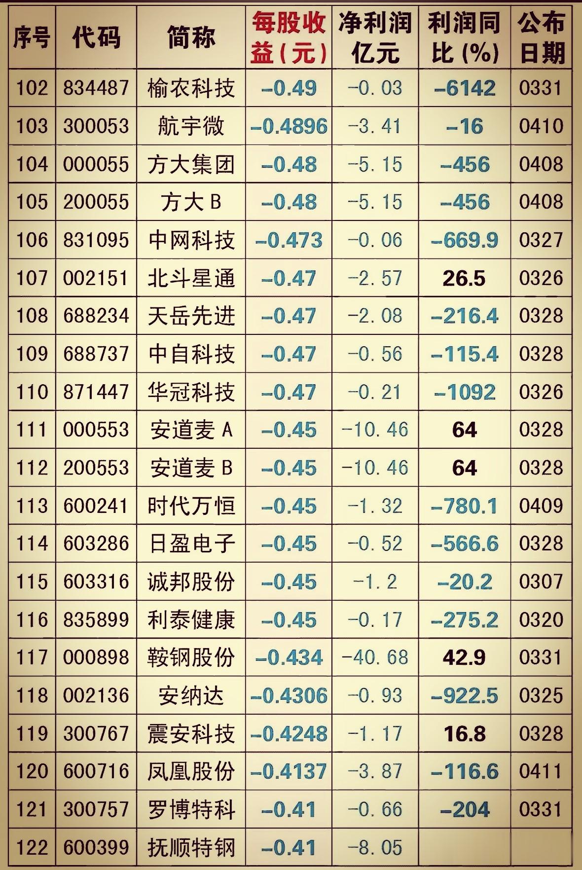 上市公司年报披露接近尾声,到4月11号为止,最新有超过两百家上市公司的成绩单上是亏损的,而且不少亏得让人头皮发麻。每股收益是负的也就算了,利润比起前一年直接断崖式往下掉,有的跌了好几倍甚至上千倍,这种股票你要是手里拿着,晚上睡觉都不踏实。