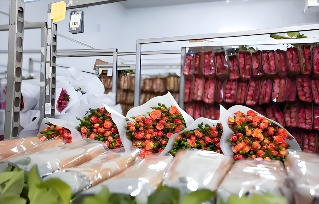 这样一来,鲜花就不用单独包一辆昂贵的冷链车,而是搭上了蔬菜水果的顺风车,运输成本直接减少了一大半,损耗率也大大降低。