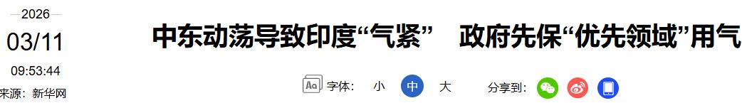 3.2026-03-11《中东动荡导致印度“气紧” 政府先保“优先领域”用气》-新华网