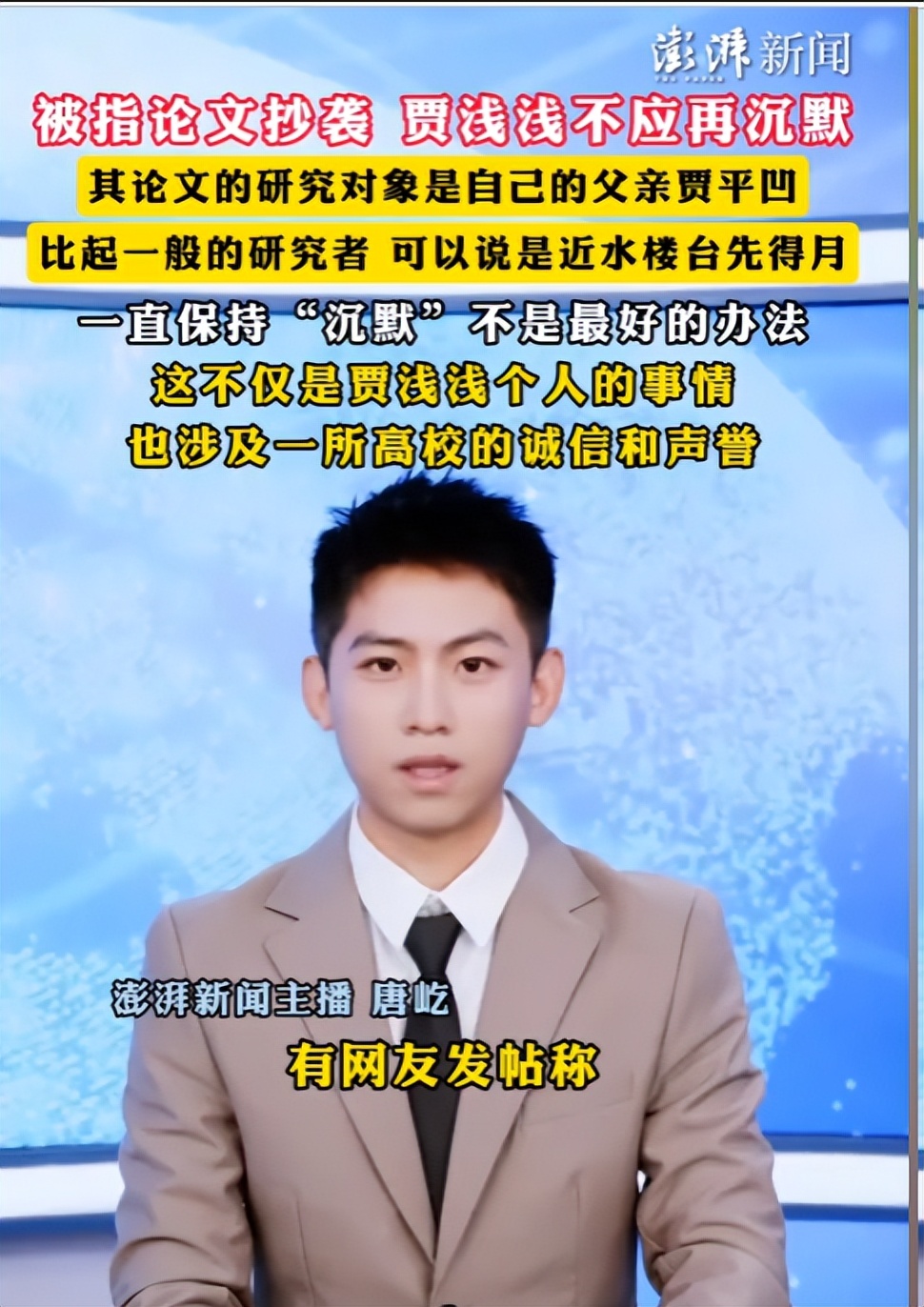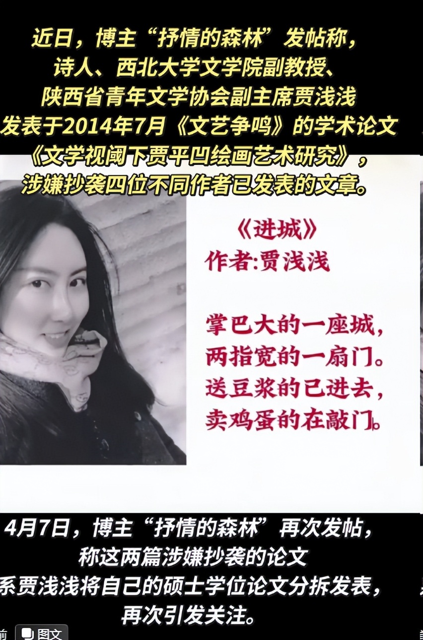 并在职攻读博士学位,2024年12月获得博士学位,父女俩先后在同一所高校共事,交集近十年,期间贾浅浅多篇论文被指涉嫌抄袭。