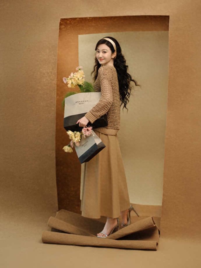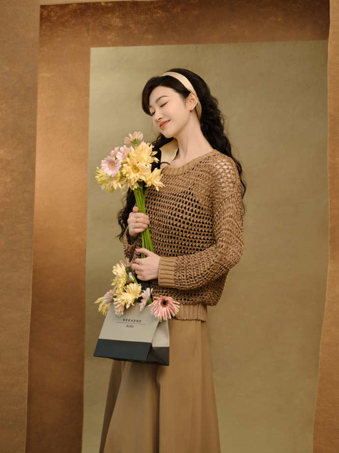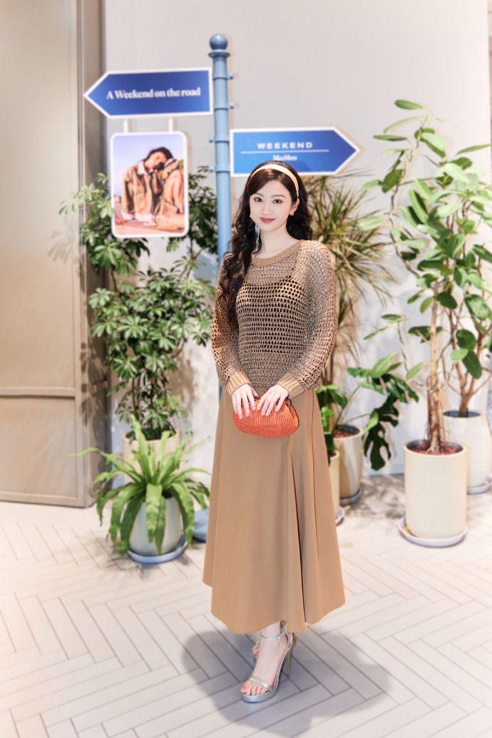 景甜穿着镂空针织衣脚踩高跟,美的无敌了