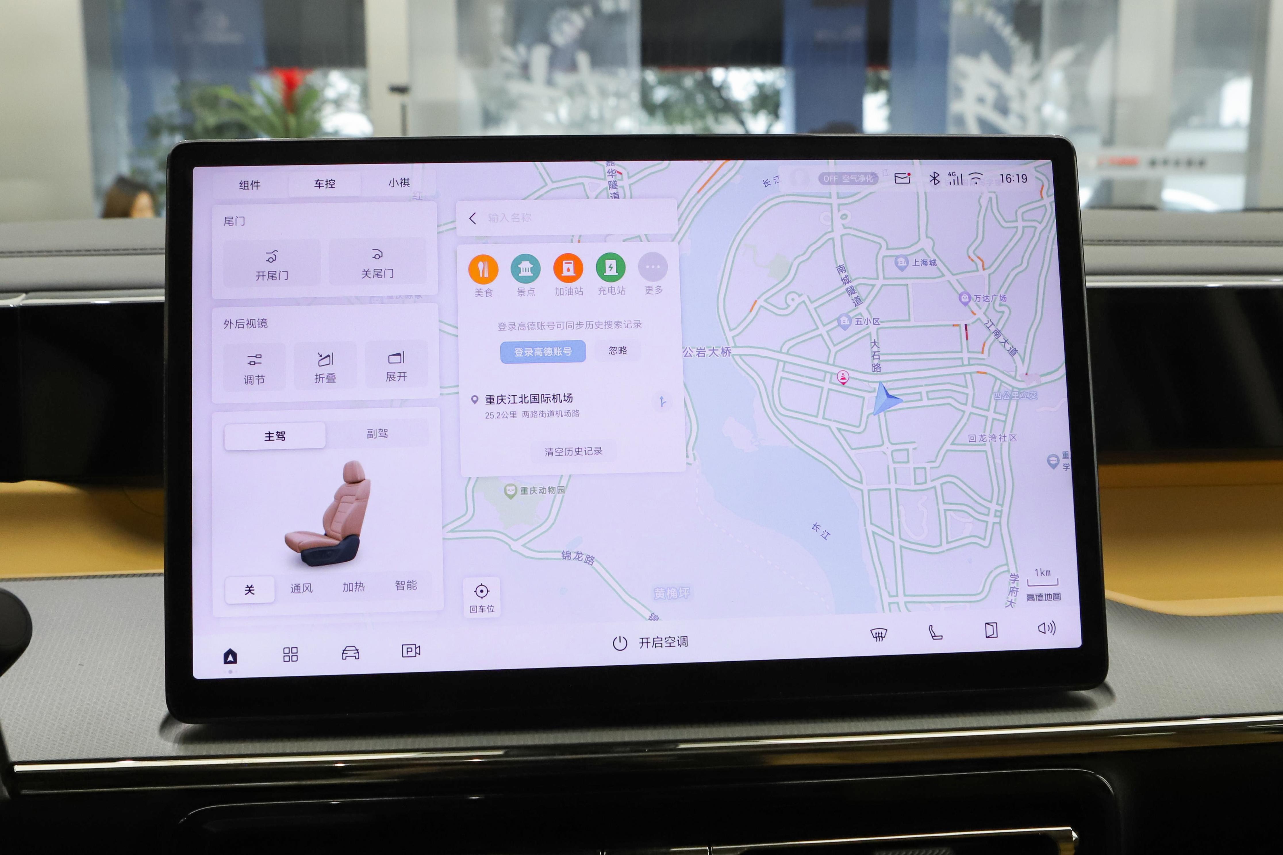 走进车内,内饰的配置也很丰富。三幅式平底方向盘握感舒适,上面集成了不少常用的功能按键,操作起来很方便。8.88 英寸数字液晶仪表与 14.6 英寸高清中控触控显示屏,显示清晰,信息丰富。中控屏下方还保留了实体空调控制按键,对于习惯使用实体按键的人来说,这设计很贴心,不用再在屏幕上费劲找空调调节选项,盲操作也没问题。车机基于高通骁龙 8155 芯片运行 ADiGO SPACE 超感交互智能座舱系统,运行流畅,支持高德导航、前排语音控车、在线 OTA 升级等多项功能。