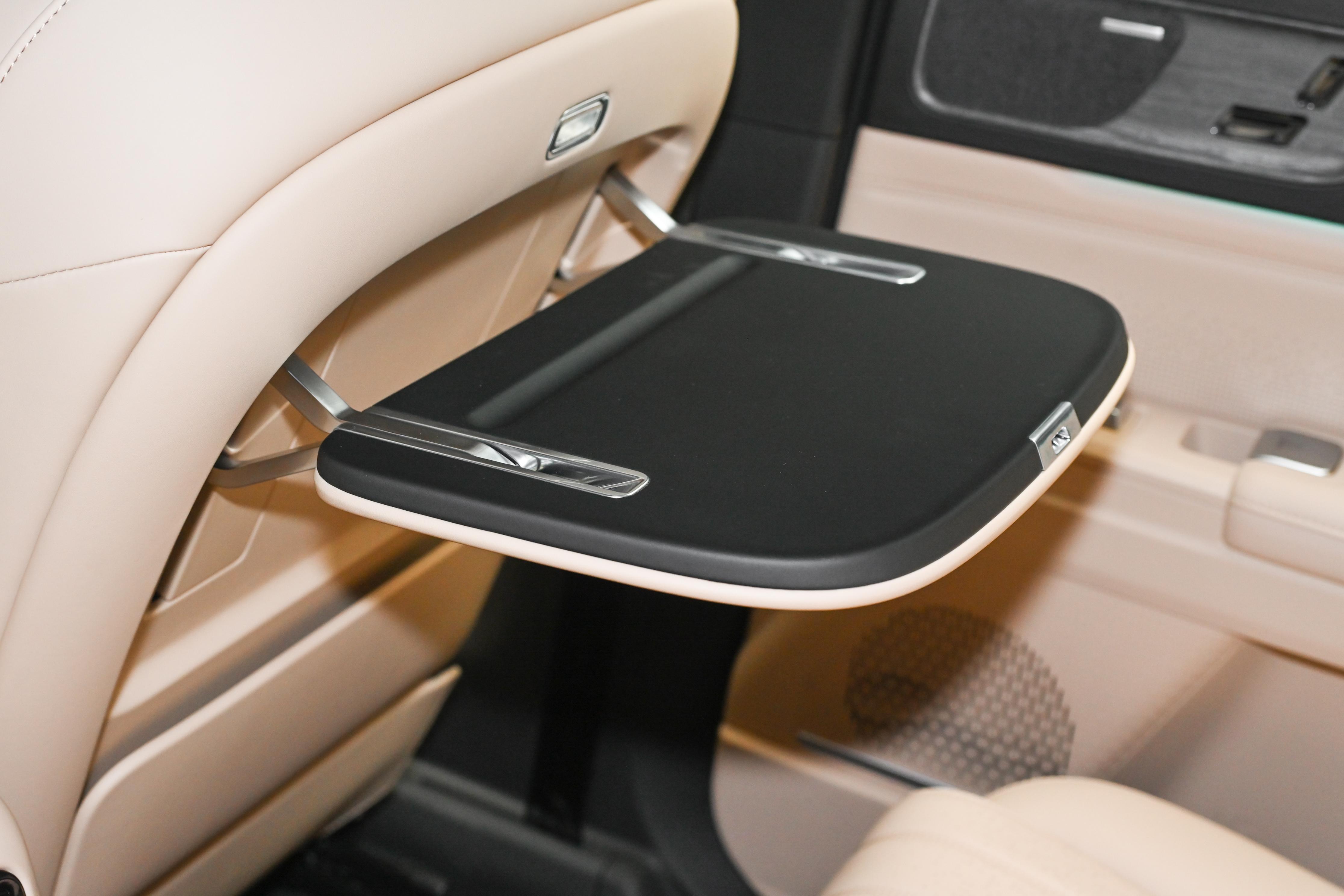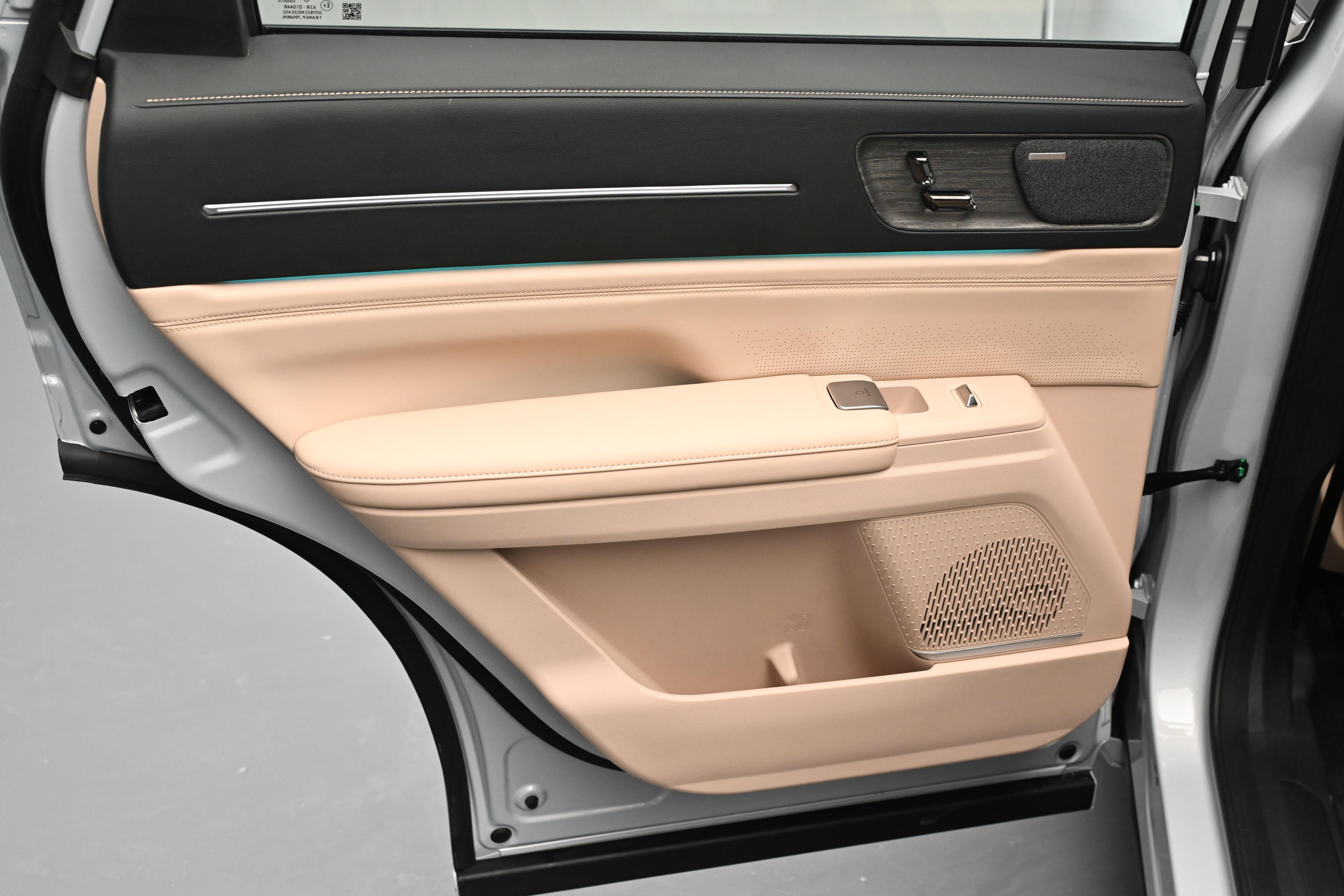 从实拍车能看到它丰富的舒适性配置。座椅为皮质,触感柔软。二排小桌板承重可达 30 公斤,后排乘客放置电脑、餐食等没问题,很契合长途旅行场景。220V/2.2kW 车内电源,能给多种电器供电。电子儿童锁避免儿童误开车门,伯牙之音 12 扬声器音响可享受优质听觉体验,可开启全景天窗让车内更显通透。