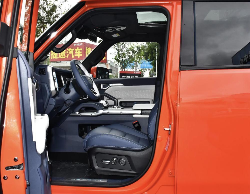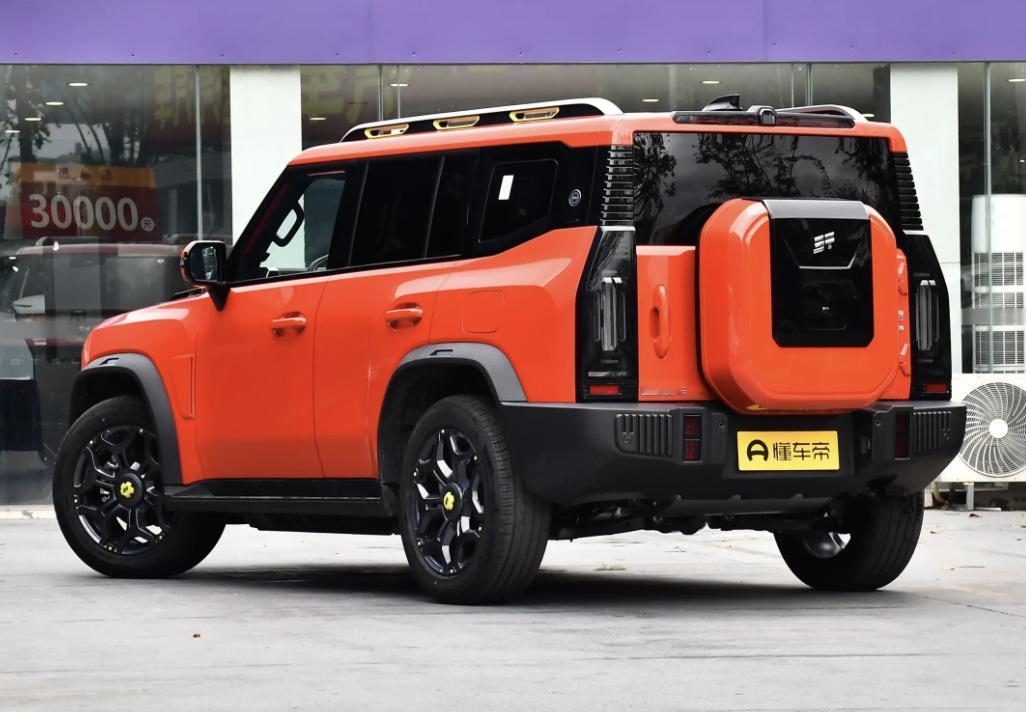2,外观就像名字一样,越野感十足,采用硬朗的方盒子风格设计。上方中网选择搭配超大的英文标识,带有一定的机甲元素,整体风格就是比较粗犷,大灯组同样是方形设计,而为了行车安全,车辆远光灯的照射距离达到了200米,近光灯的照射距离是在38.1米。车辆尺寸同样不会觉得小,长宽高在4785×2006×1875(1910)毫米,车身轴距在2800毫米,而从通过性的角度去看,离地间隙在205毫米。车顶位置安排了行李架,长时间旅游,不用担心行李不够放,底部轮毂是在20英寸,辨识度足够强。尾部则是采用小书包的结构,并且车门是侧开式方案,大物件很好摆放。