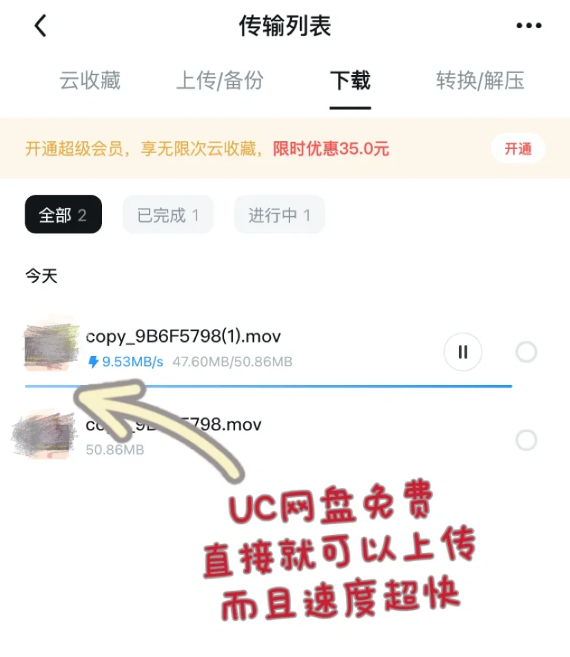 现在用UC网盘再也不用考虑内存不足的问题。特别值得一提的是UC网盘不限速、无套路、非会员和会员也一样块。