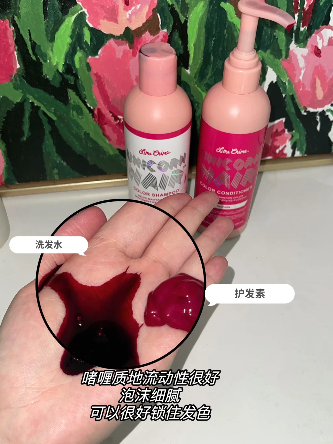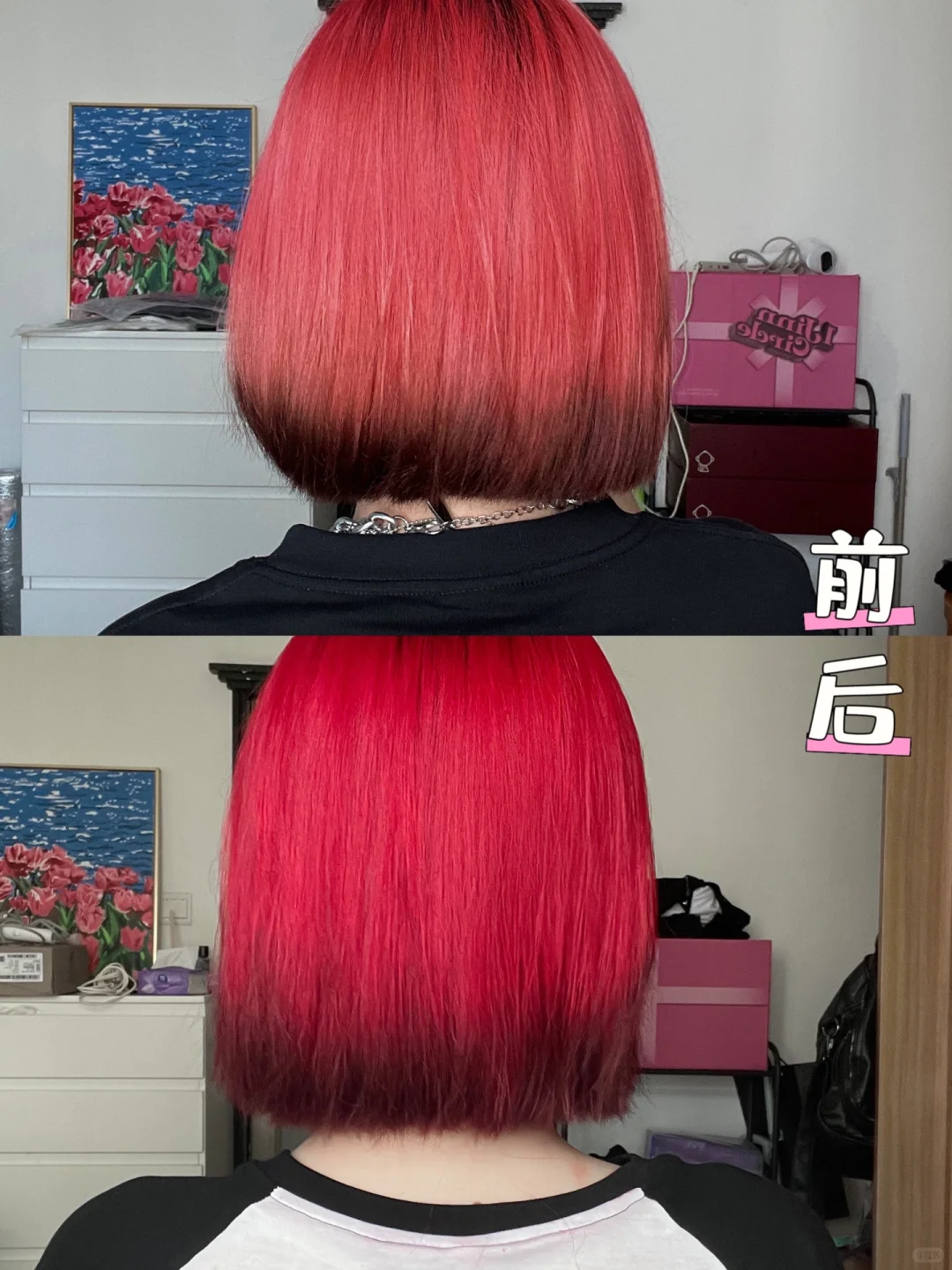 我一般日常3-4天洗一次头,如果有拍摄或者出去玩就是一天洗一次头!所以我都是用固色洗发水护发素滴可以延缓掉色速度~尊嘟很喜欢红色!❤️