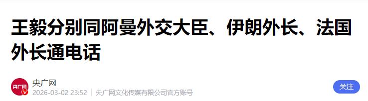 王毅外长也接连与伊朗、阿曼等多国外长通话,全力推动冲突双方停火止战、重启对话。