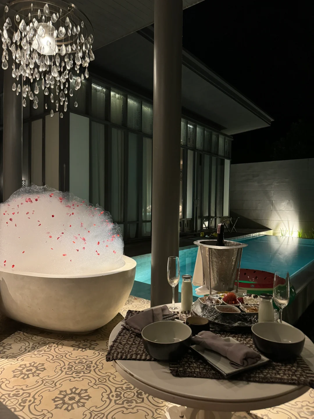 1.房间里泳池超级大,1.5米深,真的可以游的,而不是泡水桶,小朋友在房间里就可以游的很开心,根本不用去公共泳池。记得可以问酒店免费借一个救生圈,因为水真的很深,太小的小朋友下水大人一定要在旁边看着,不然很危险的。