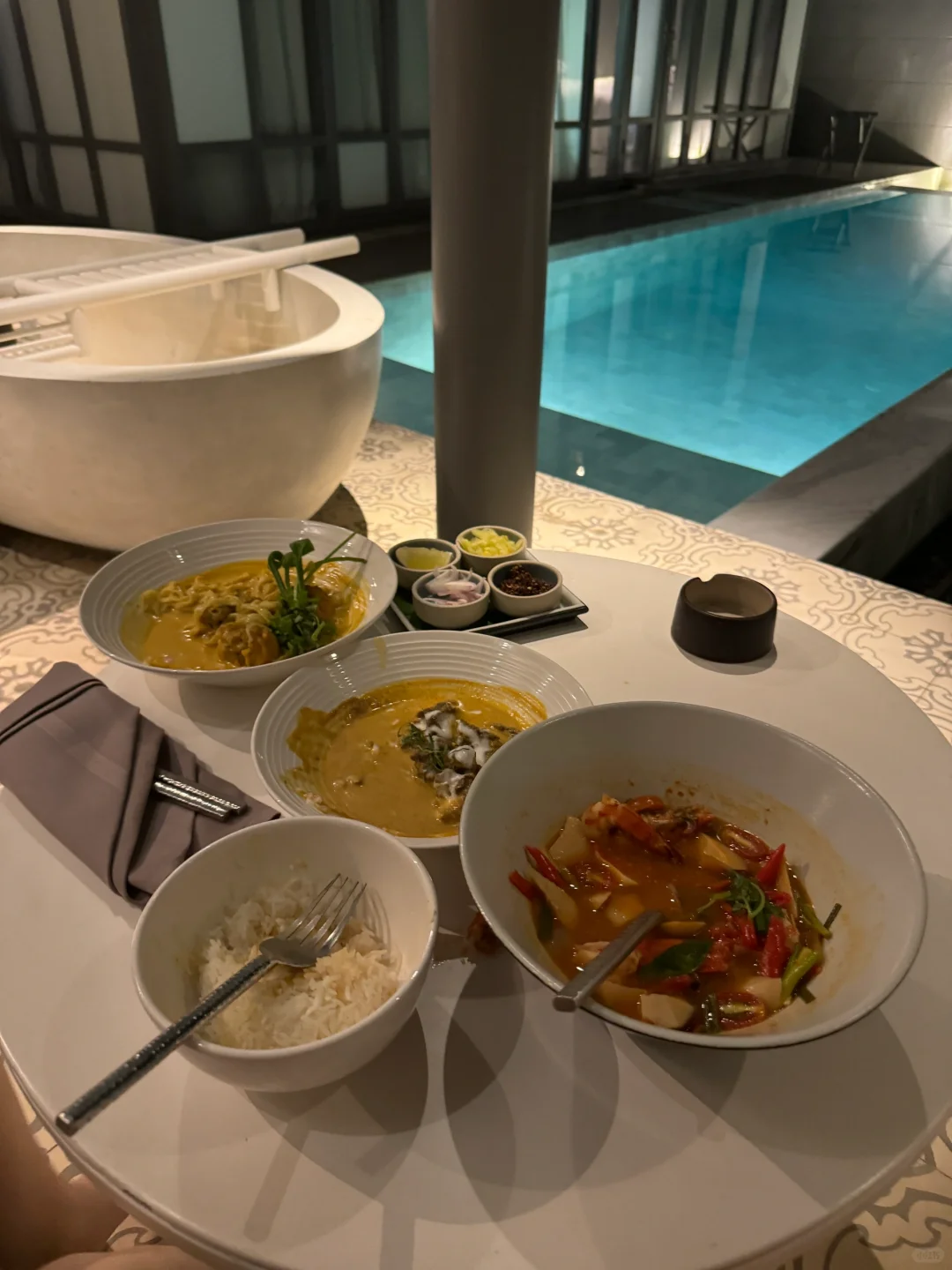 3.酒店只有一个餐厅,但味道是在线的,所以连吃了两顿,都不高兴出去了,咖喱鸡饭和冬阴功汤真的好吃到舔盆[笑哭R][笑哭R]上海完全吃不到[失望R]