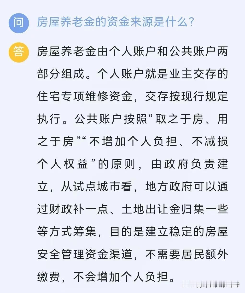 但我想说房屋养老金的公共账户建立,对现老破旧小区肯定公立马增加保障和改善,对所有新建的高层住宅长期持有也增加了可期待的保障,毕竟这个资金问题不解决会造成房屋老化维修无兜底,待房龄满三十年后尤其超高层电梯住宅会失去流通价值而贬值,正府还要考虑安全事故这是很现实问题,其实真正可落地对房地产是利好尤其是老破旧小区