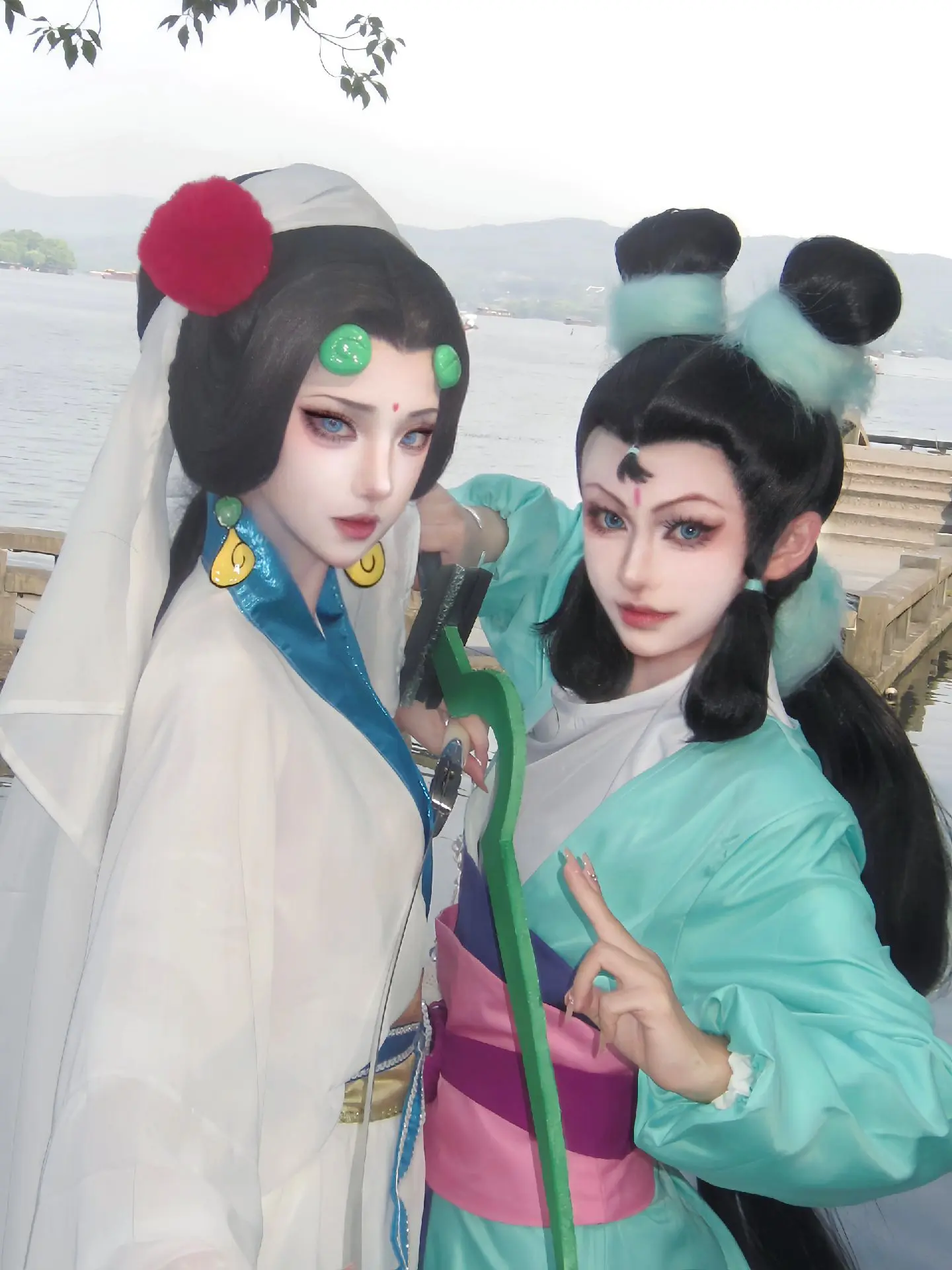 白与青。水漫金山 cos 白素贞小青 童年回忆