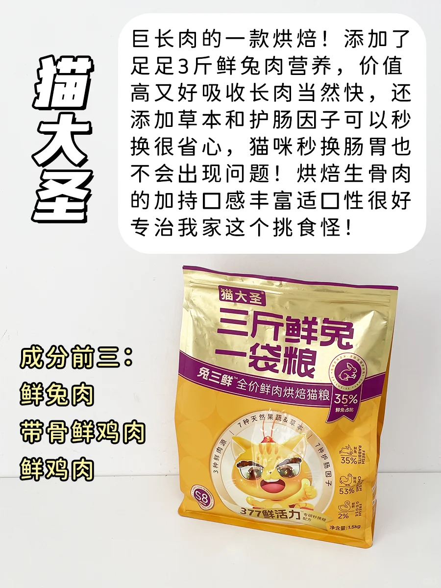 买了猫大圣兔三鲜,对比下来品质比较好的,价格也合适