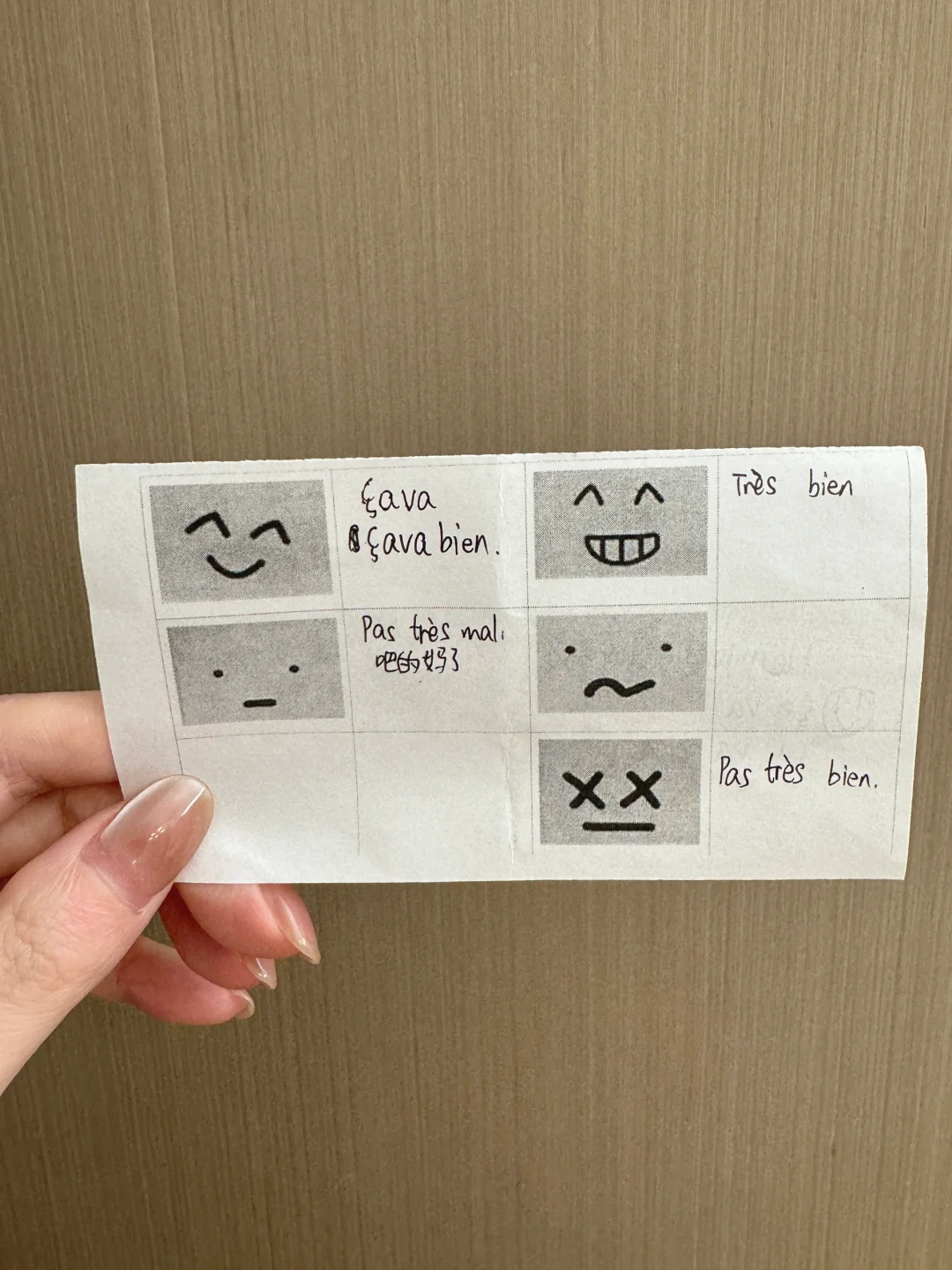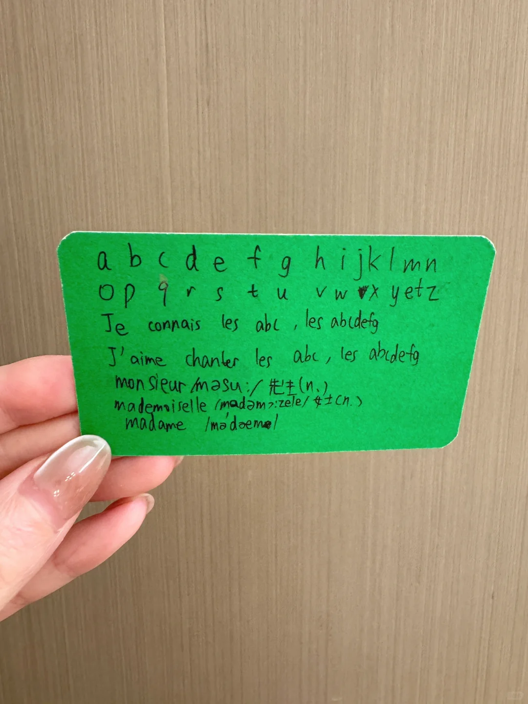 今天下午有法语课,蕞近回家都主动要求教我说法语,还好我大学时期也学过一点,不然要给她得瑟的嘞哈哈。yo一整个白眼翻上天,内心os:我妈怎么什么都会[黑薯问号R][黑薯问号R]