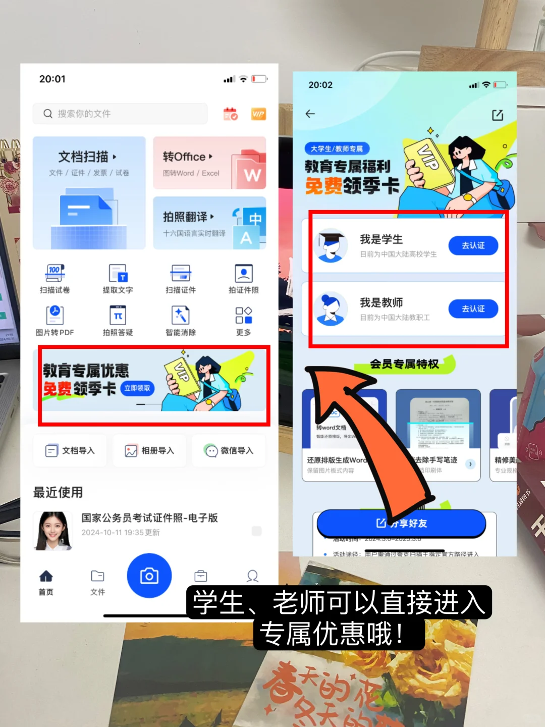 夸克扫描王APP还可以扫描文档和试卷哦!可以用来提取题目,高效整理错题本,高清扫描无杂质,很方便。现在大学生认证学生身份还能领取季卡会员!
