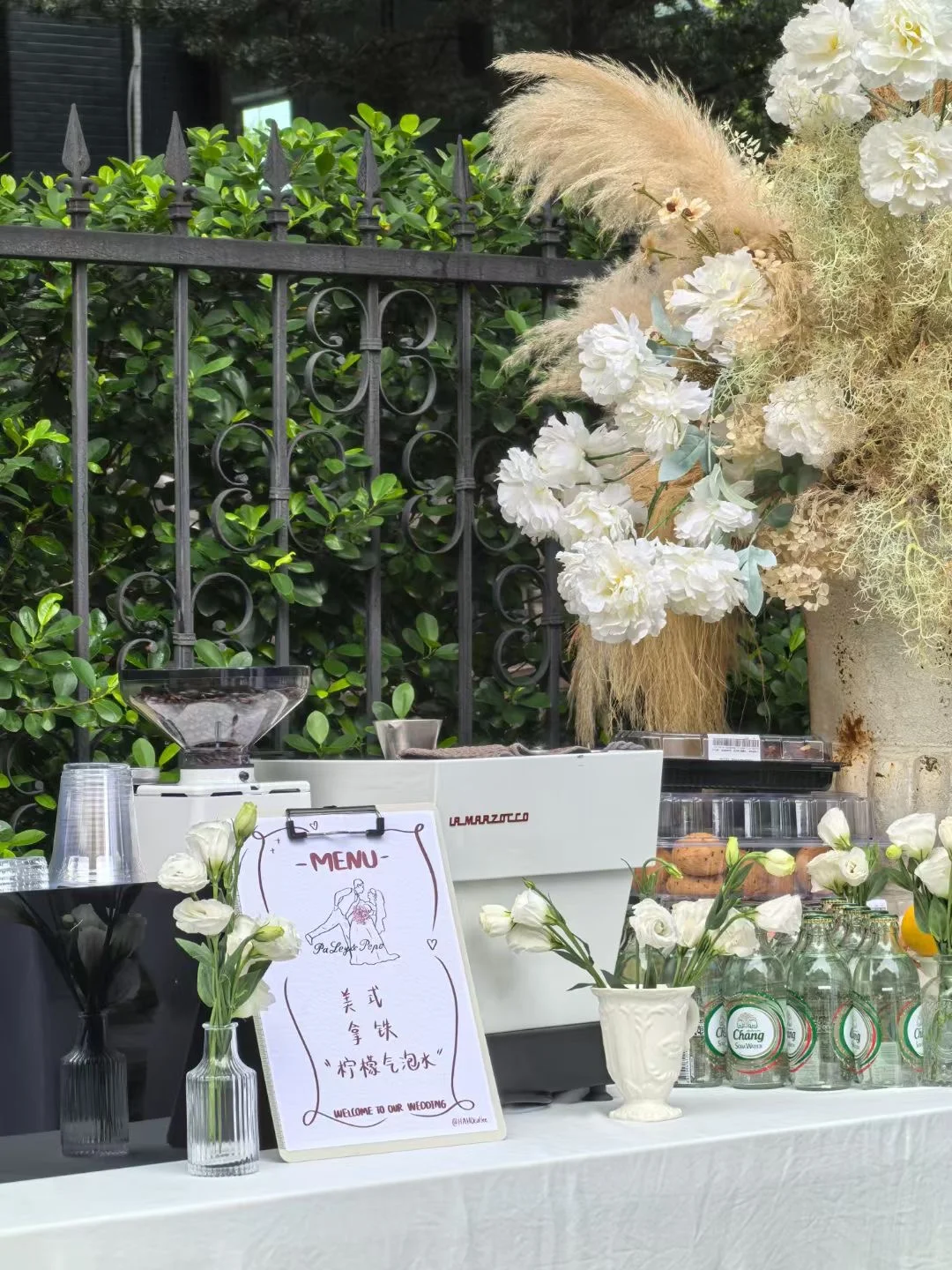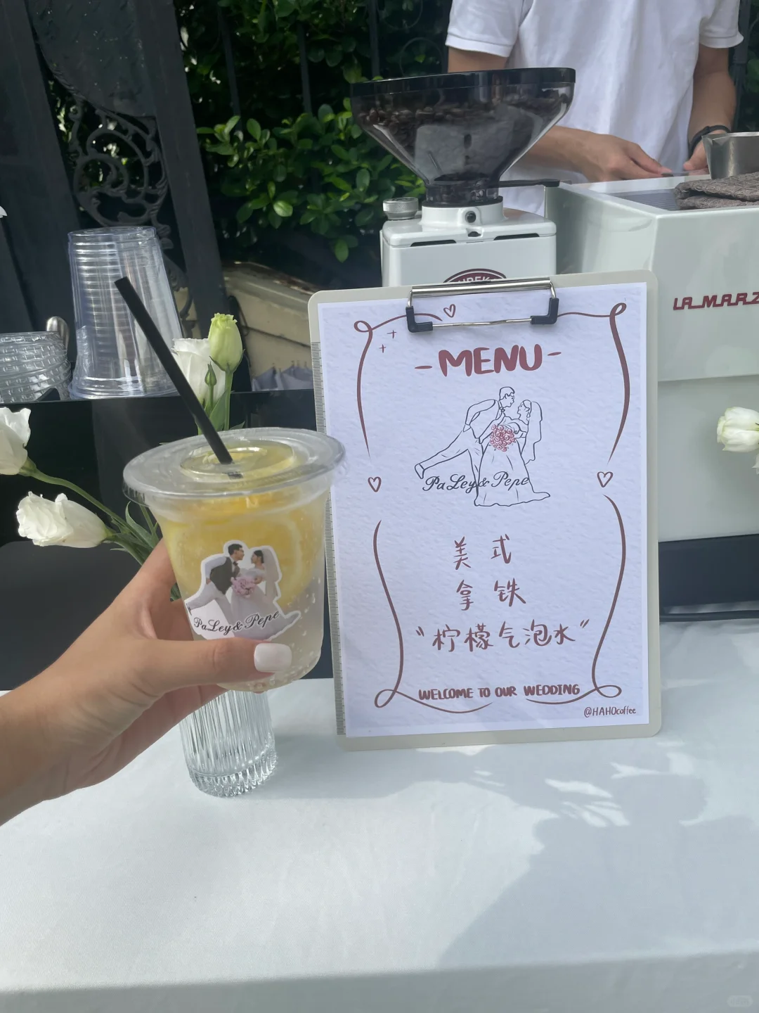 当天安排了咖啡师最受好评,咖啡师小哥还提前帮忙做了手绘婚礼咖啡菜单,真的超感动!