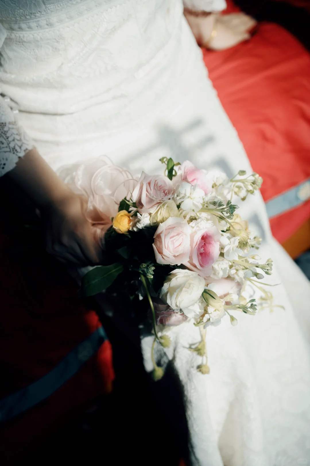 我开始感觉疲惫,只有伴娘或者小王在和我说话的时候我能笑一笑,摄影师的摆拍只能拍到我越来越垮的面部表情。