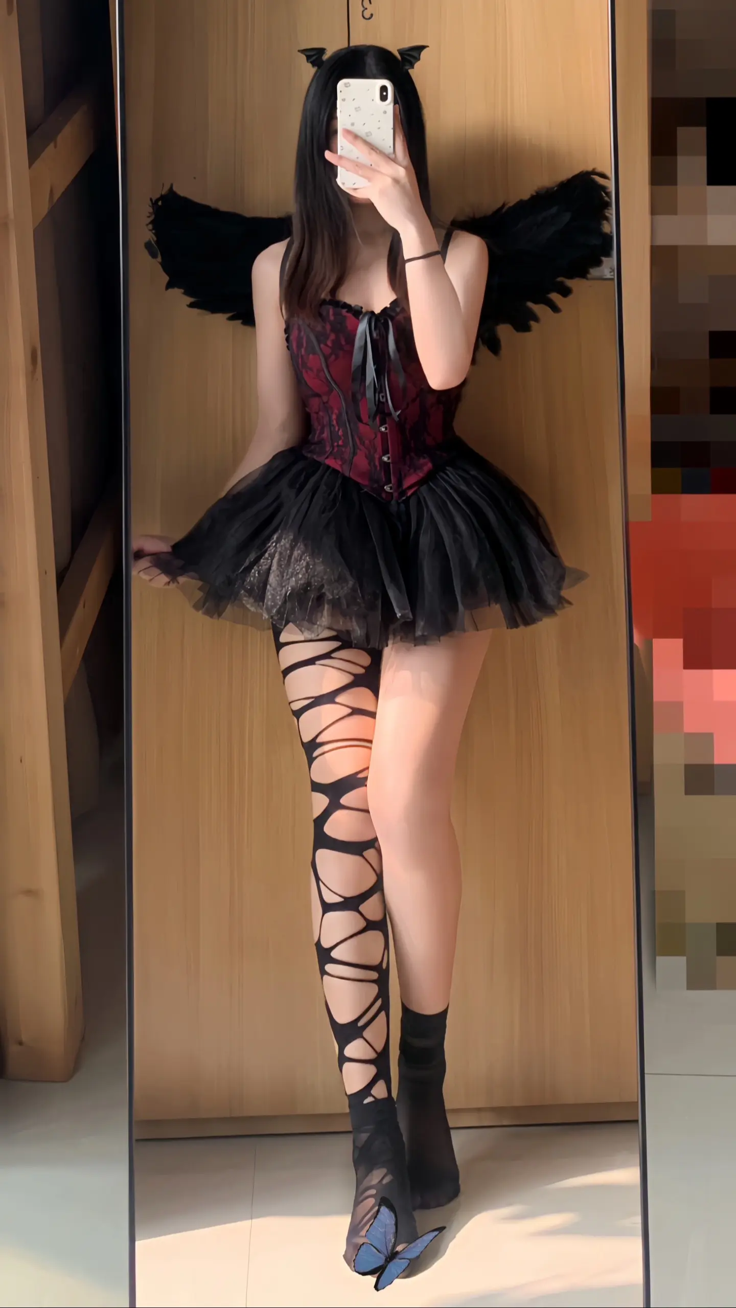 腿长一米八 对镜拍 今天穿什么 黑色系