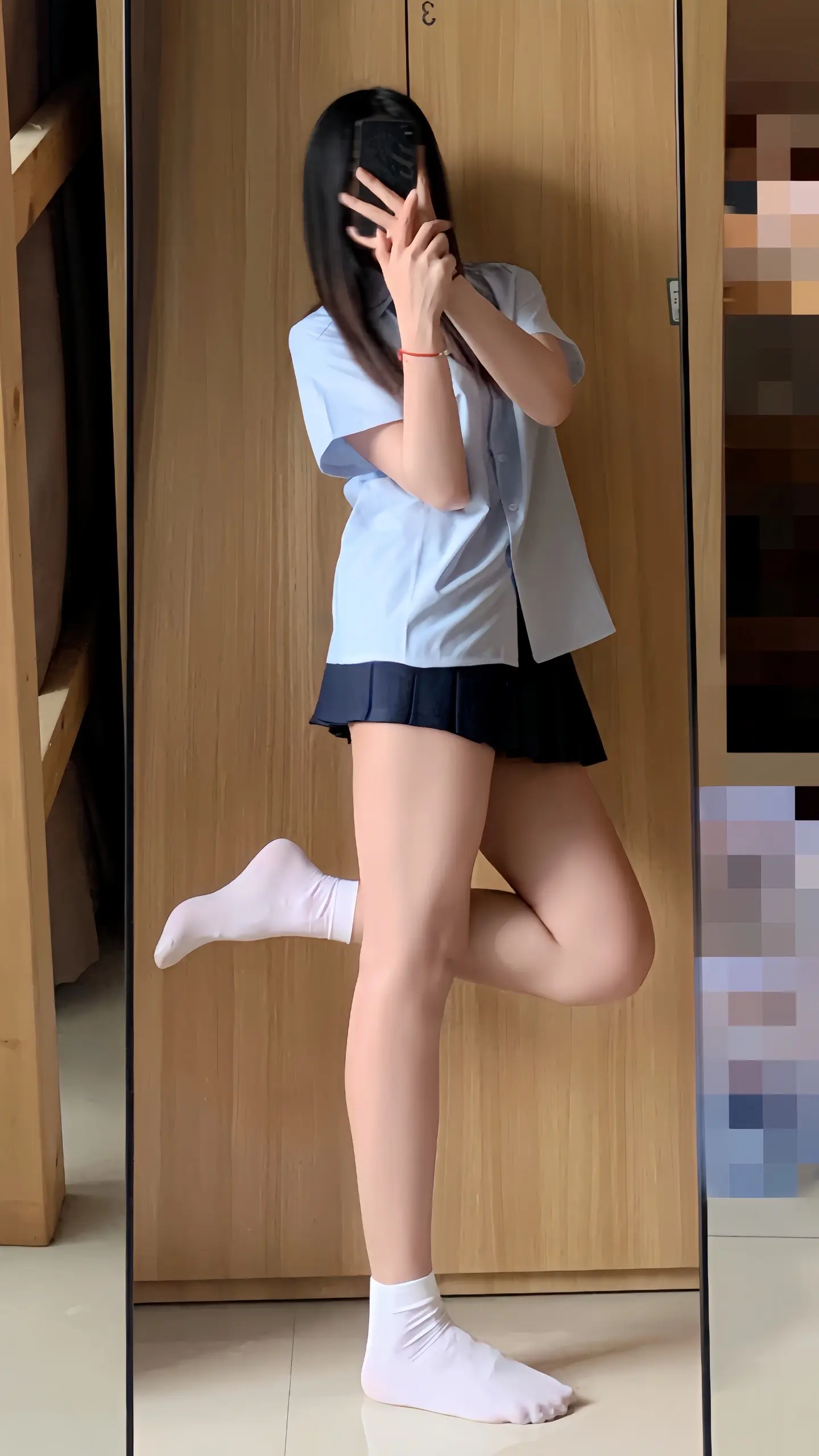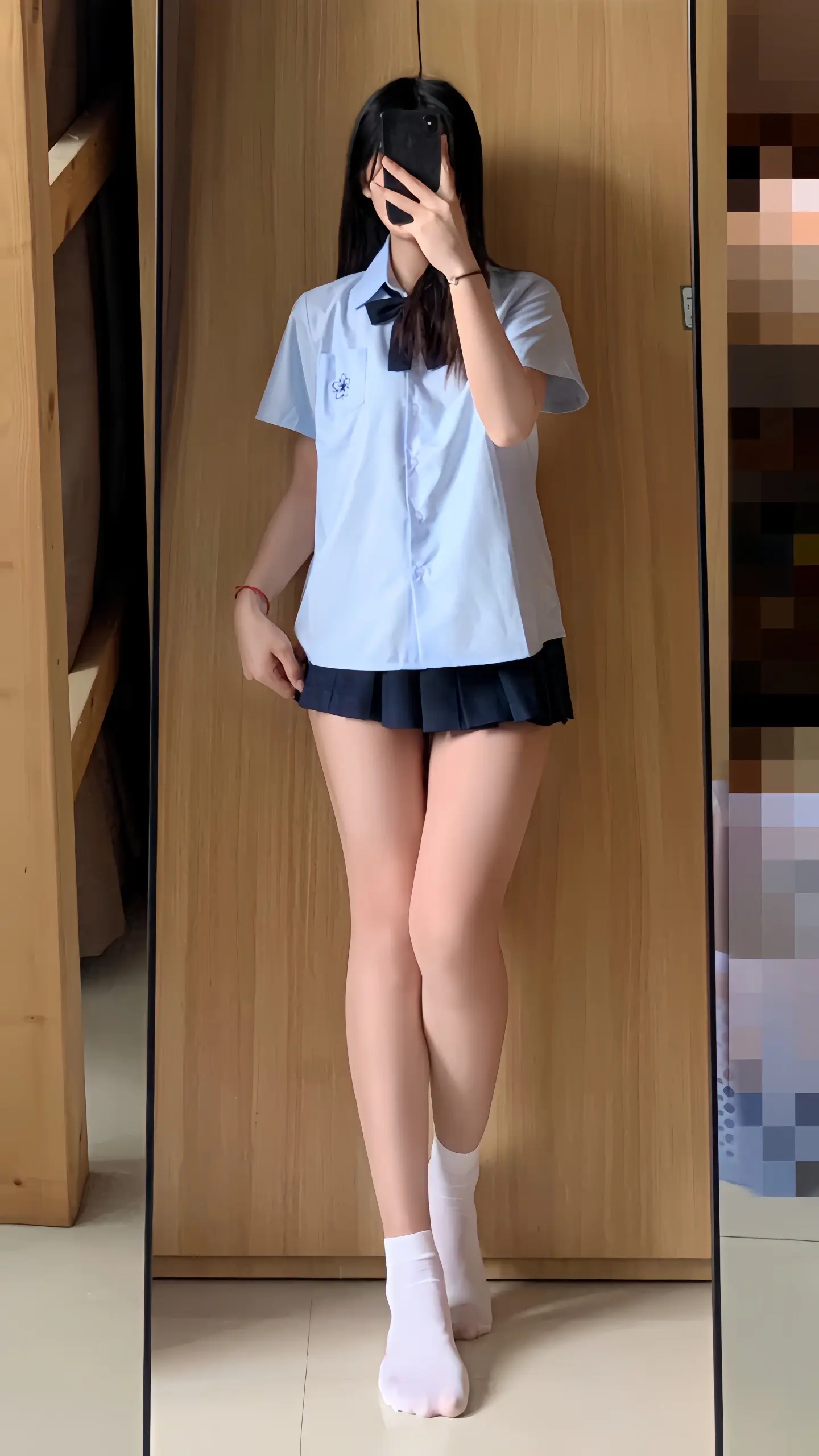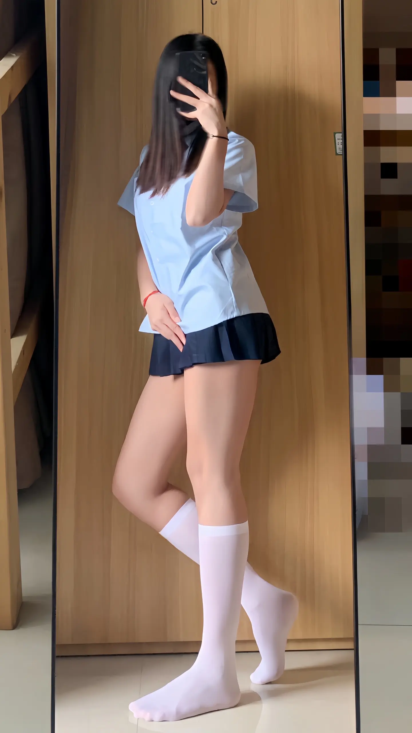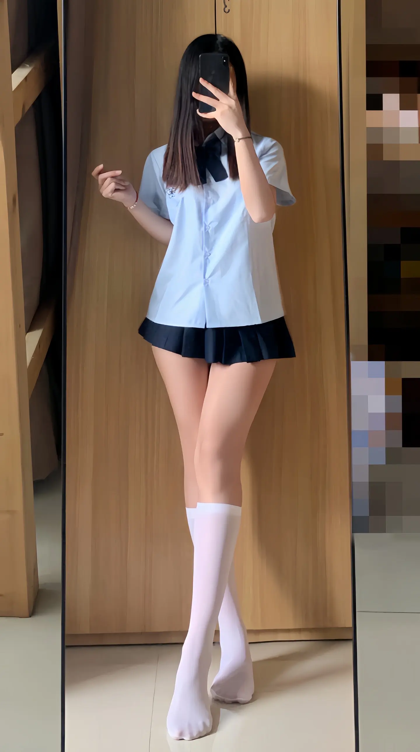 腿长一米八 jk 今天穿什么 对镜拍