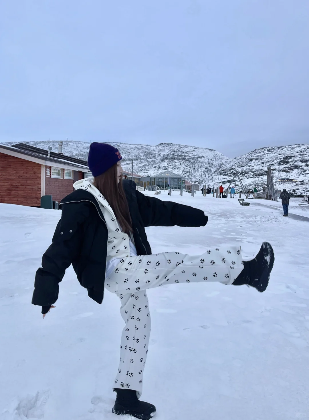 ❄️整个捷里是冷色调的孤寂感,白天10.都是蓝调☃️很美很美,如果是晴天中午天空是粉粉紫紫的,凌晨还会有极光🌈爆发,是个在任何时刻都有不同景色🦌感觉的小城市,有风的时候会很冷感觉脸都刮肿了我的脚还是暖的哈哈哈哈非常推荐去像下雪的城市都穿它,选择雪地靴主要是舒服防滑还要好搭配的,衣服就是加绒棉裤加长袖套半袖加羽绒服)主要室内很热穿太多反而不舒服
