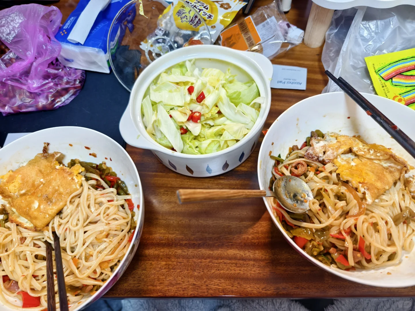 过年我做的唯一一顿饭是两碗拌面,菜码是中午点外卖吃剩下的酸辣鸡杂。