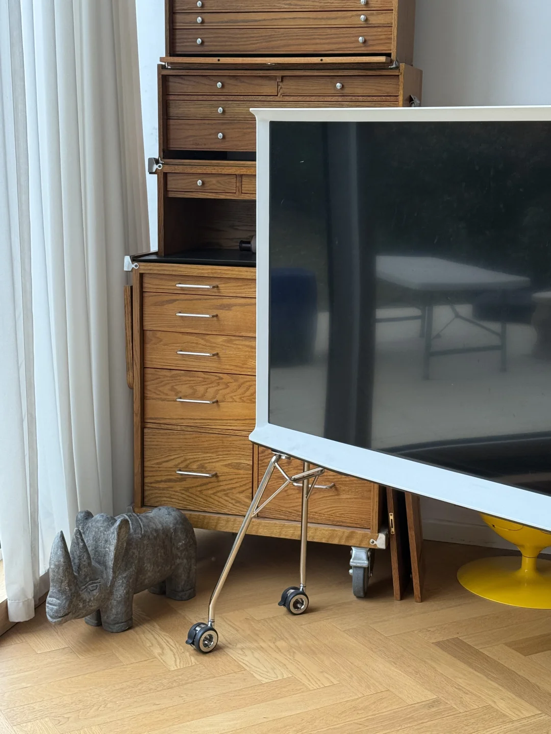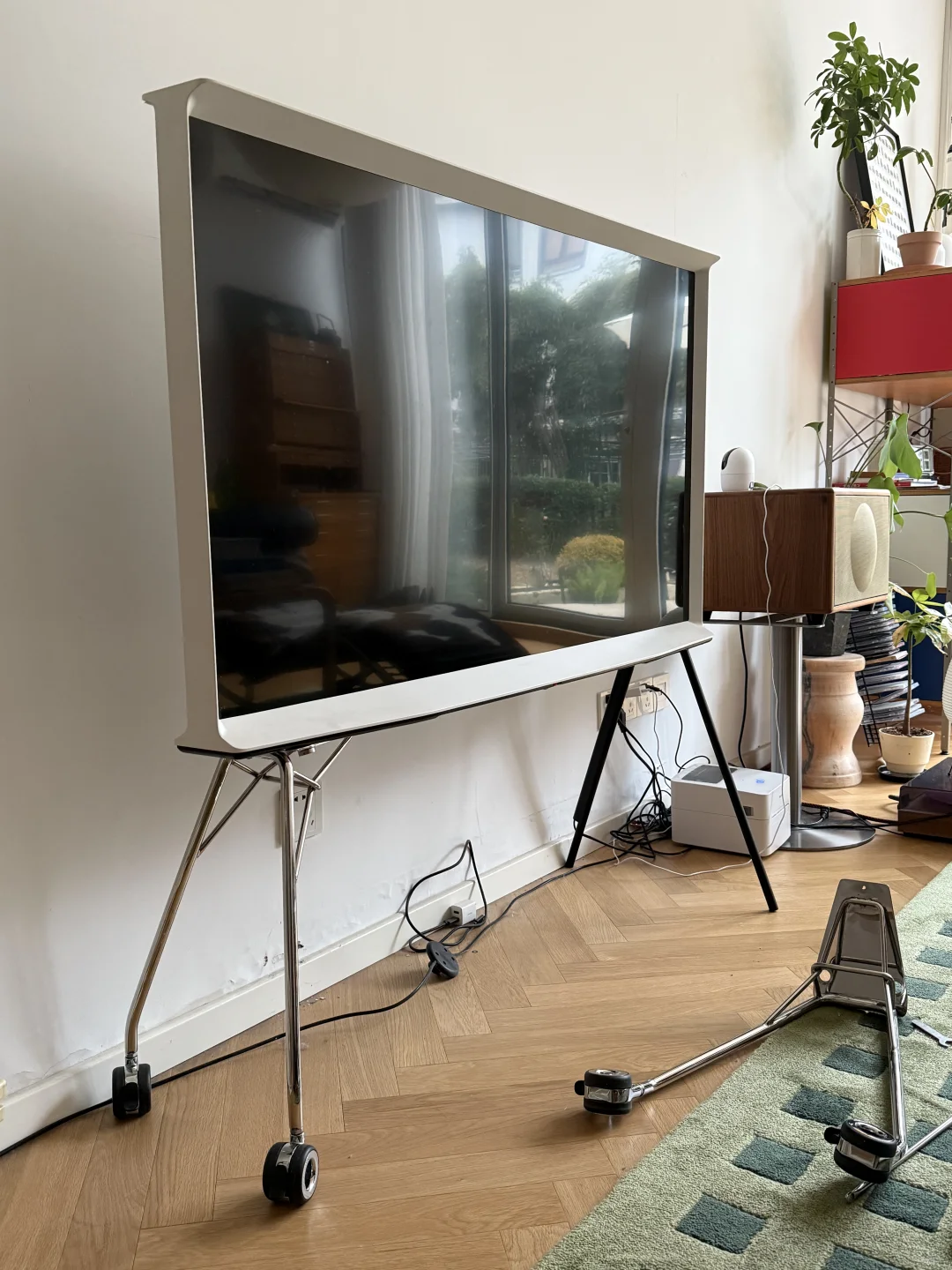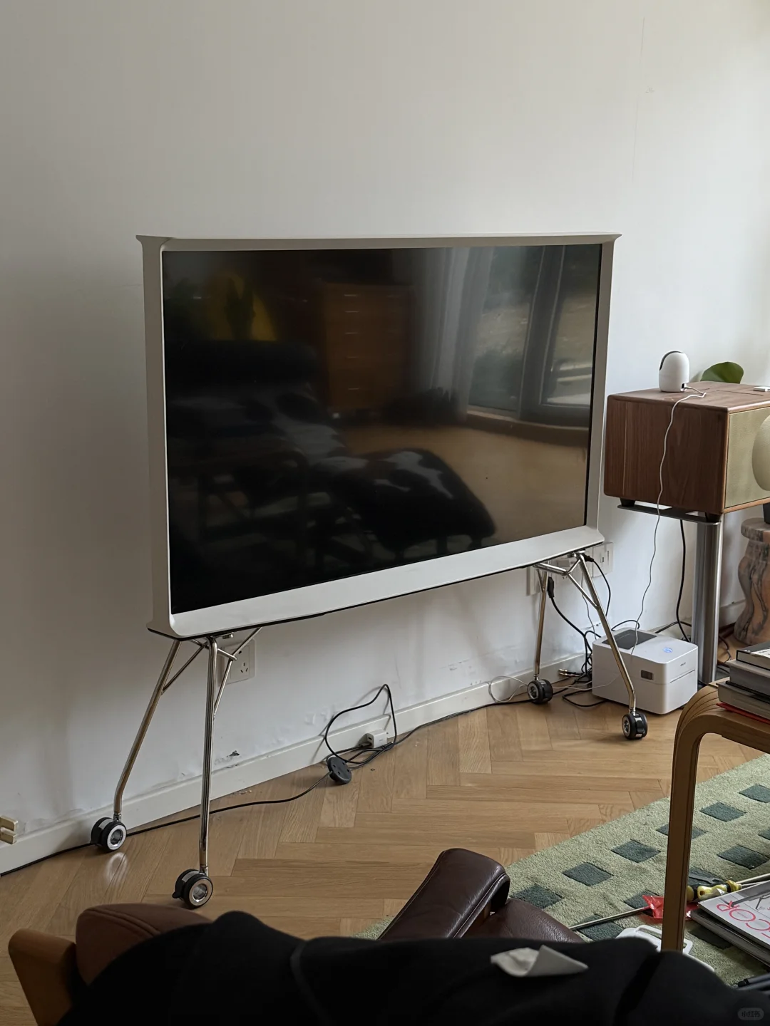 3.黑腿是垂直的,我的有点外趴,不过落地点不会超出电视机外(主要是这样会稳很多)