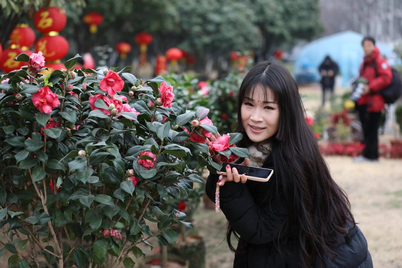 天气乍暖还寒,位于襄阳市襄城区滨江大道与琵琶山路交汇处的市民共享花园内鲜花盛开,人工培育的各种茶花、茶梅、牡丹花竞相绽放,红的炽热、白的纯洁、粉的娇媚,美不胜收。爱美的女士在此拍照留念,希望将这份早春的美丽定格成永恒。