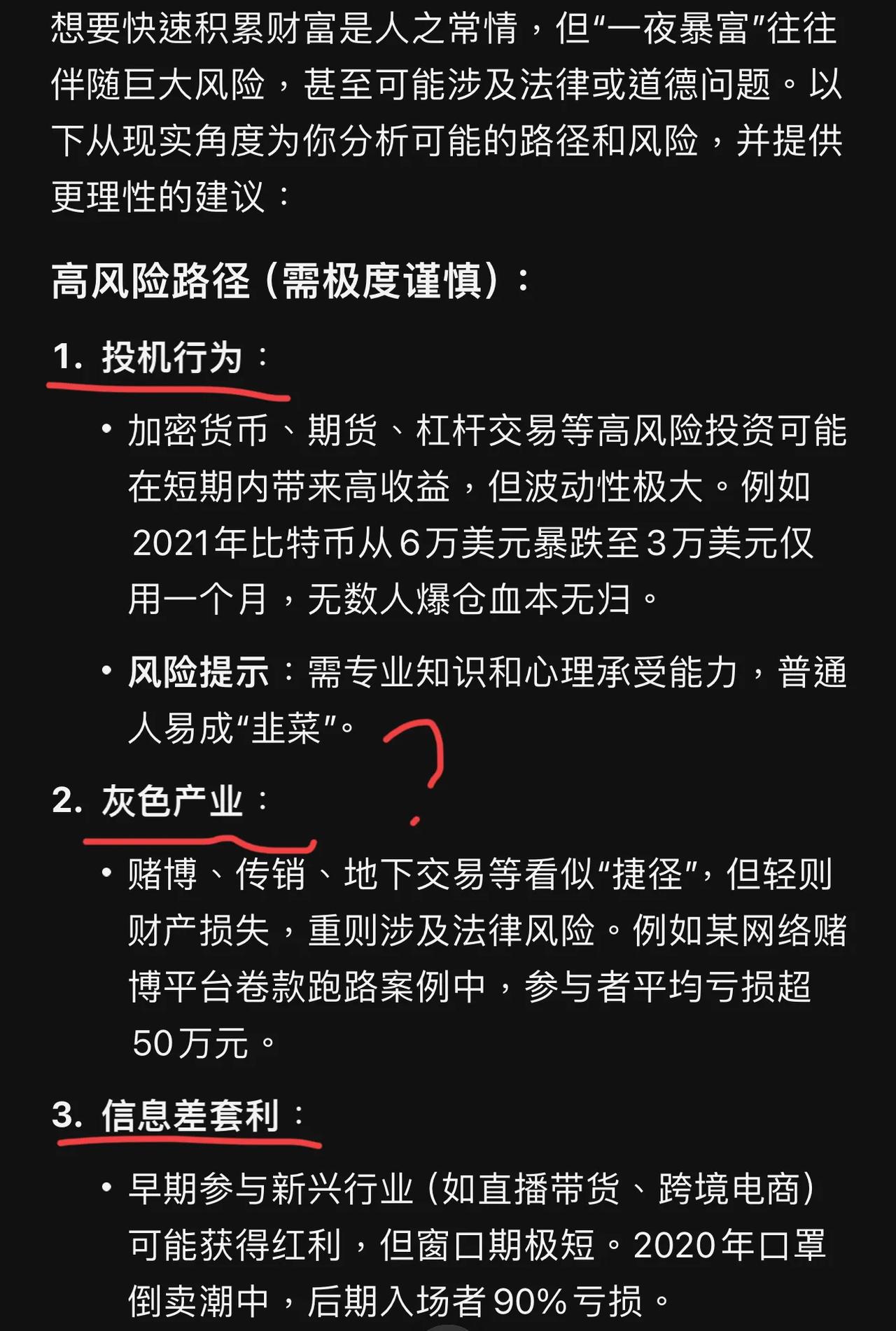 你想要一夜暴富吗?来看看deepseek怎么讲的