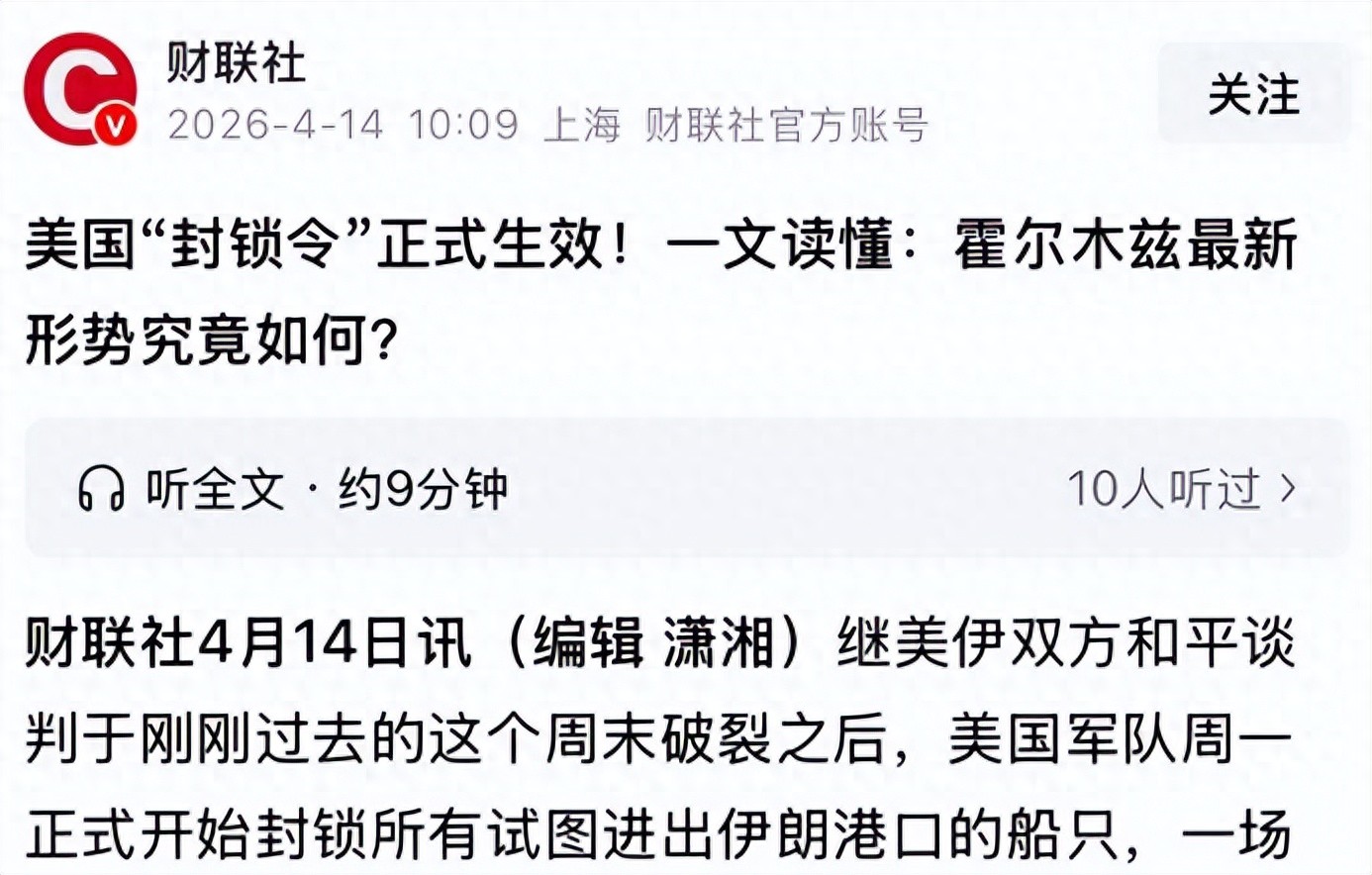 当地时间4月13日,美军如期启动对霍尔木兹海峡的海上封锁,按照其公布的规则,所有在海峡内缴纳过“过路费”的船只,一旦驶出海峡进入公海,都可能成为美军的打击目标。