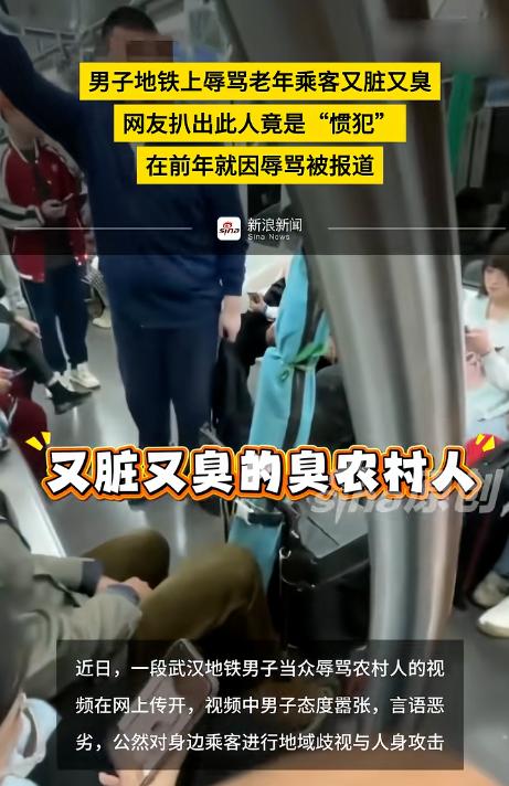 也是在地铁车厢里,也是对着乘客破口大骂,也是带着一股莫名其妙的优越感,骂别人 “脏”“土”,甚至连说话的语气、嚣张的神态,都跟这次如出一辙。