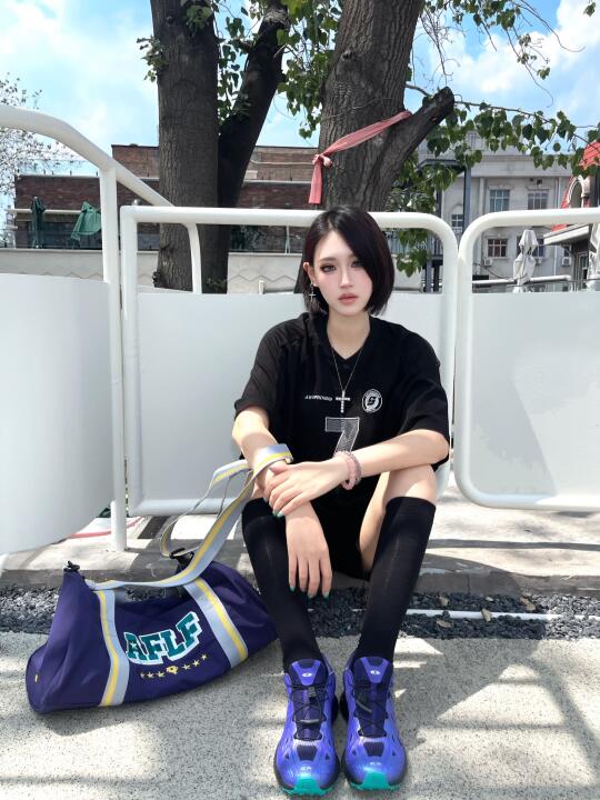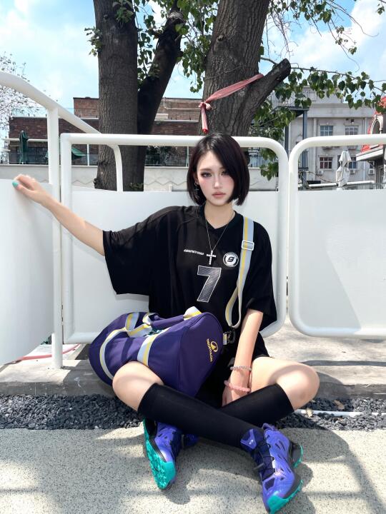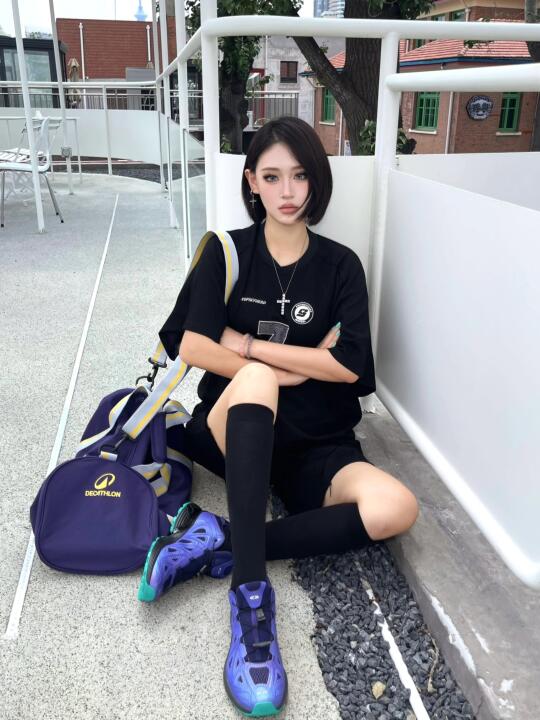 天气好的话 短发 ootd 跑步鞋 只想被阳光晒透 运动穿搭分享 球衣穿搭 黑紫配色 短发女生 运动日记