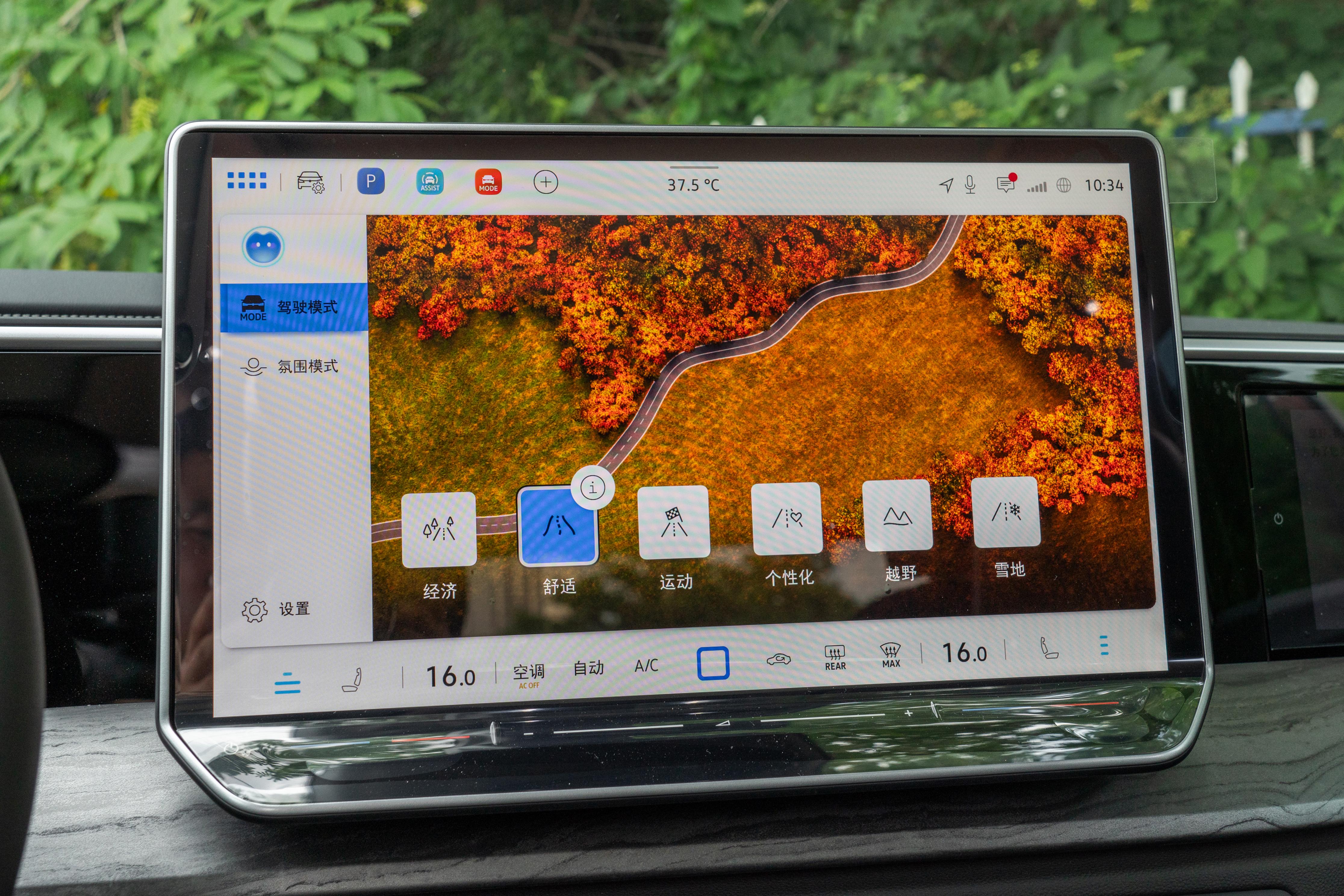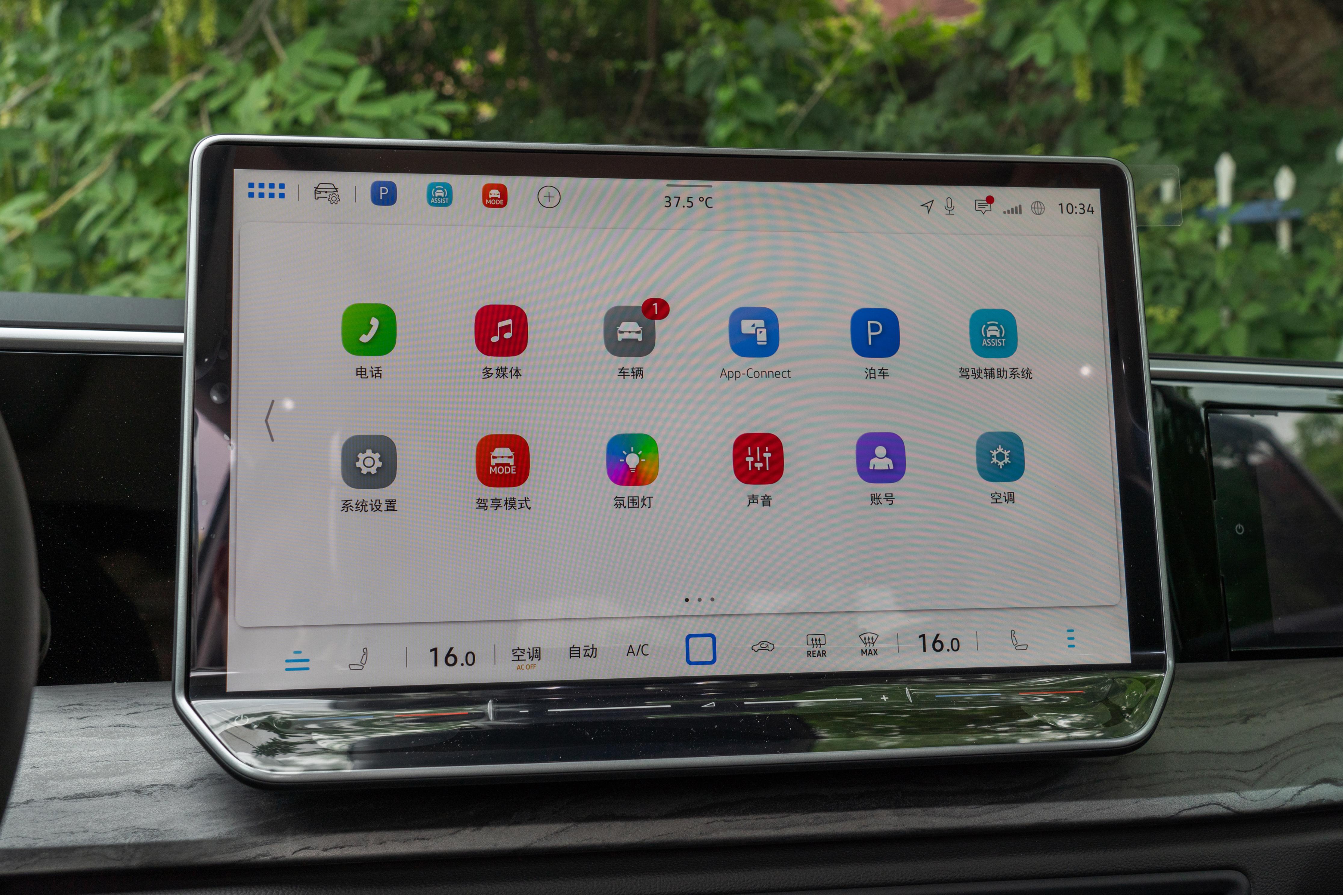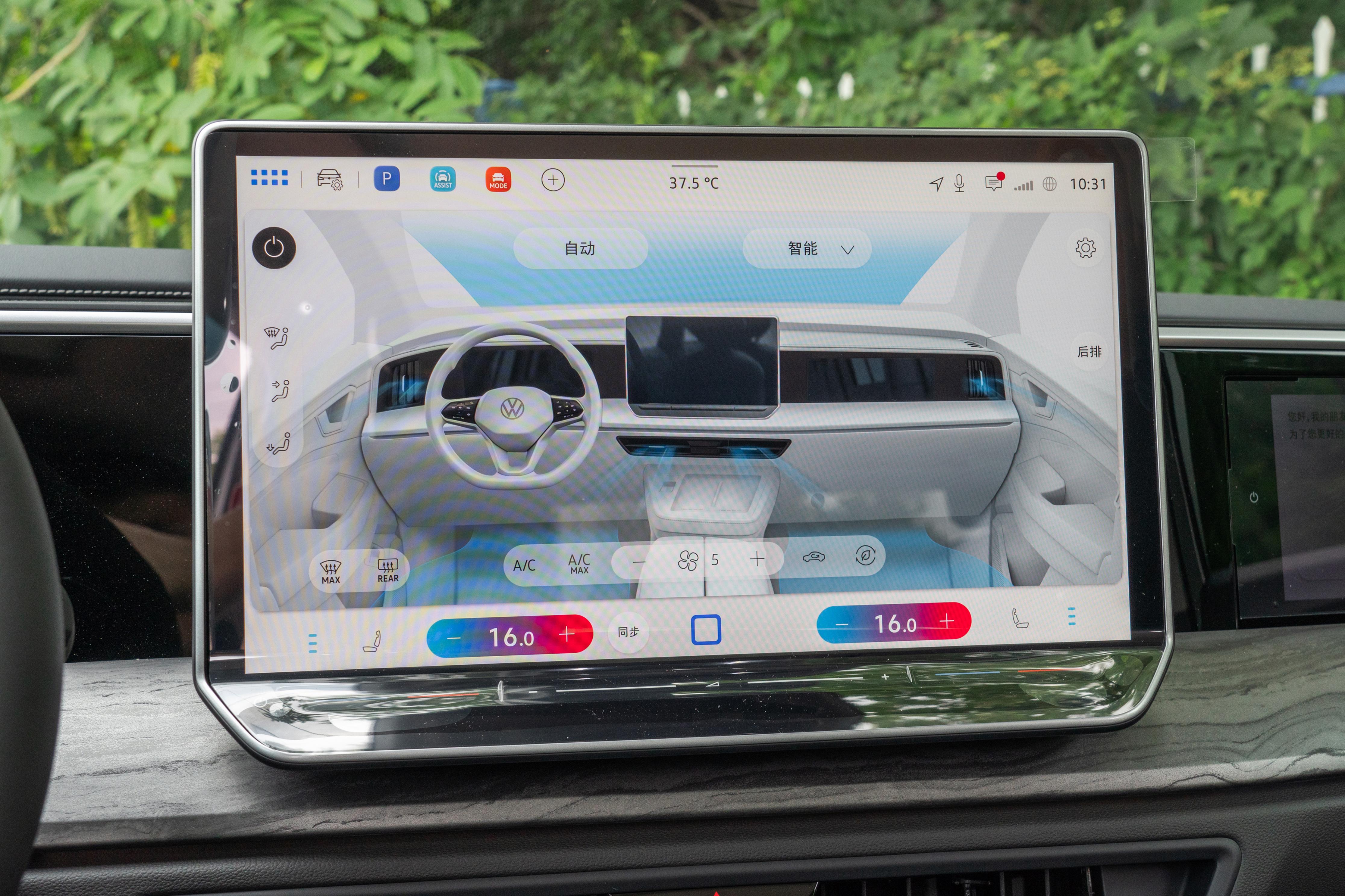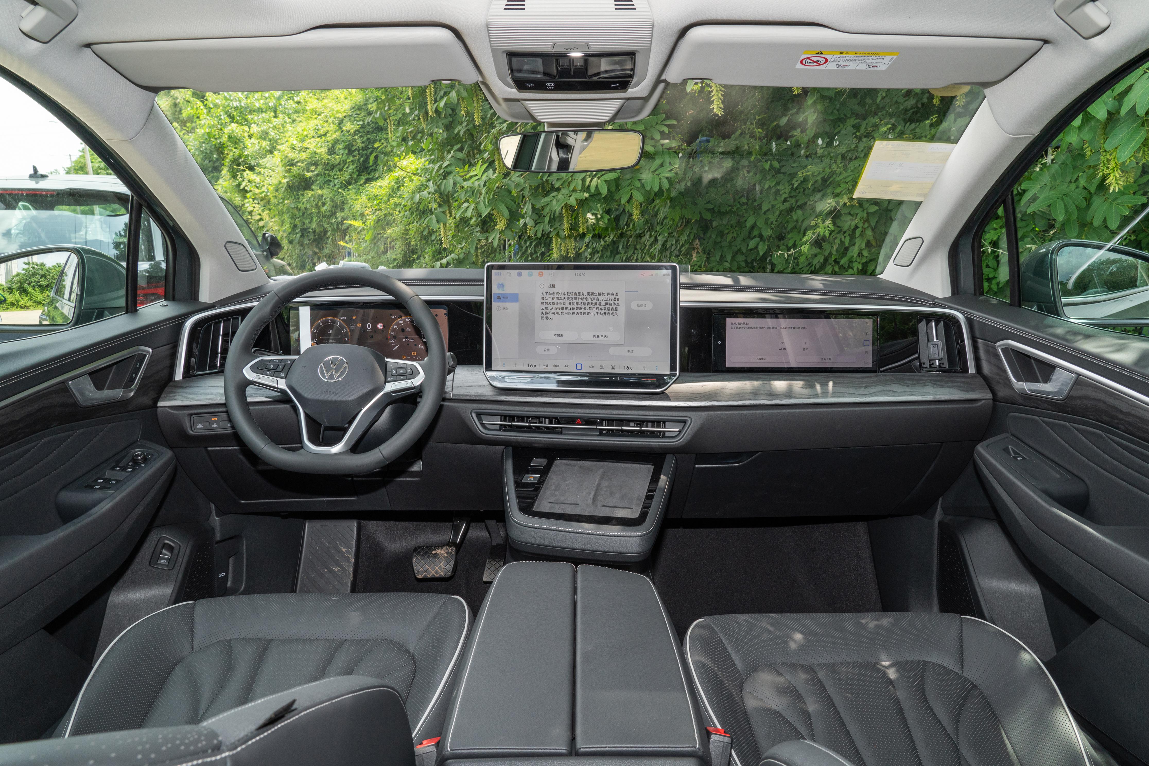坐进车里,内饰配置给人的感觉很有科技感。它采用了 10.25 英寸液晶仪表、15 英寸 2K 中控屏、11.6 英寸副驾娱乐屏组成的横向三联屏,再配合 wHUD 抬头显示,形成了多维度信息交互系统。开车的时候,各种信息一目了然,操作起来也很方便。怀挡设计把中控空间释放出来了,悬浮式操作台集成了双无线充电区域,放手机就能充电,很实用。车内软质材料覆盖面积大幅增加,触感很不错。内饰有传统黑色、棕色以及 R-Line 灰白配色等三种风格,黑色显沉稳,棕色显豪华,灰白配色则更显年轻时尚,不同人可以根据自己的喜好来选择。