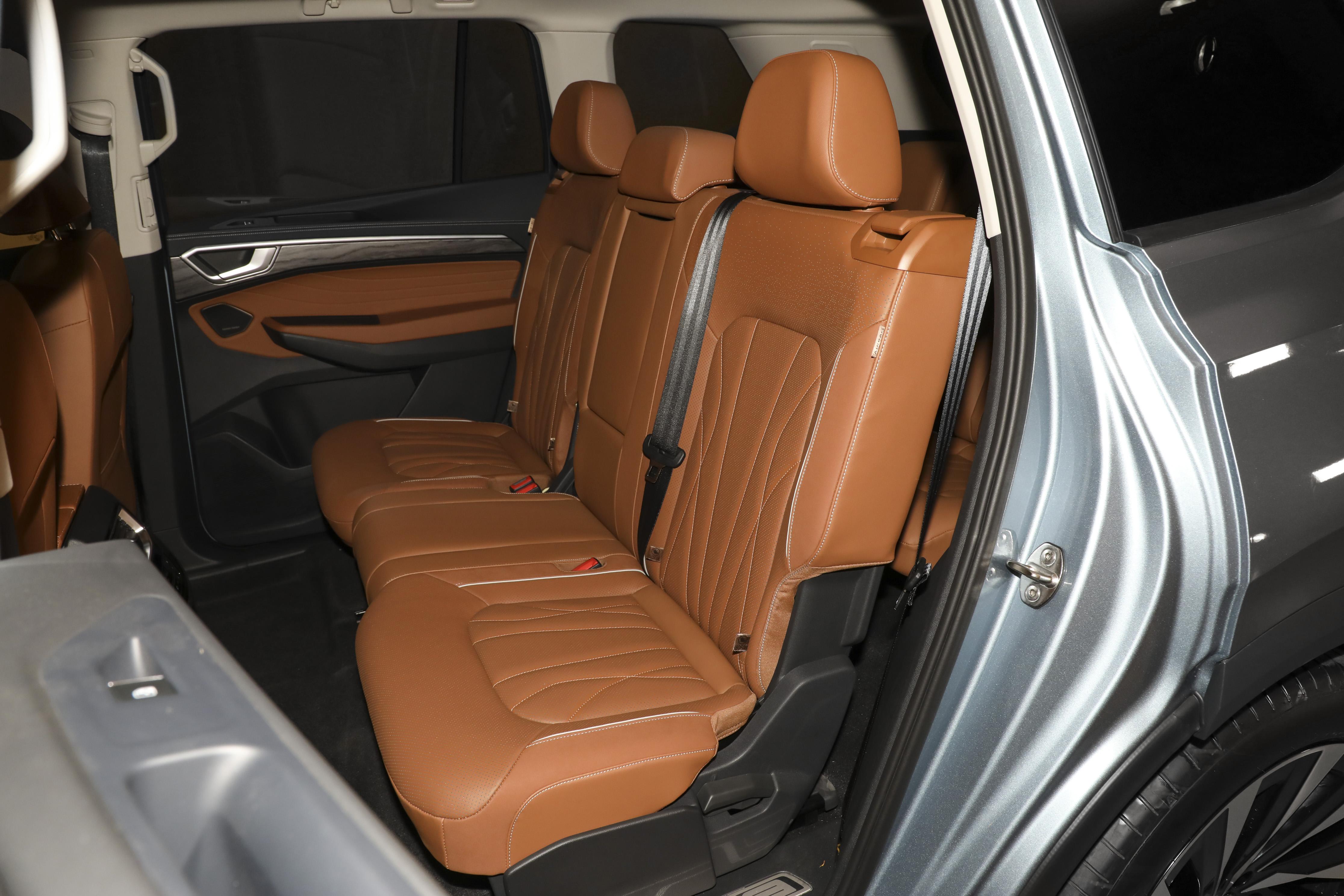 空间布局上,揽境有 6 座和 7 座两种座椅布局。6 座版第二排座椅工艺很精致,有菱形绗缝与数码打孔工艺,还配备电动调节、通风、加热及 3D 按摩气袋,坐起来非常舒服。230mm 的中央通道让进出第三排更从容,家里老人小孩上下车也方便。7 座版二、三排座椅放倒后,能形成进深超 2.2m 的纯平空间,搬家或者拉大件物品都没问题。满员状态下,后备厢还有 350L 容积,能同时装下 2 个 24 寸和 2 个 20 寸行李箱,周末全家出去旅游,行李也能轻松装下。相比丰田汉兰达,汉兰达 7 座状态下后备厢容积相对小一些,在装载能力上揽境更有优势。