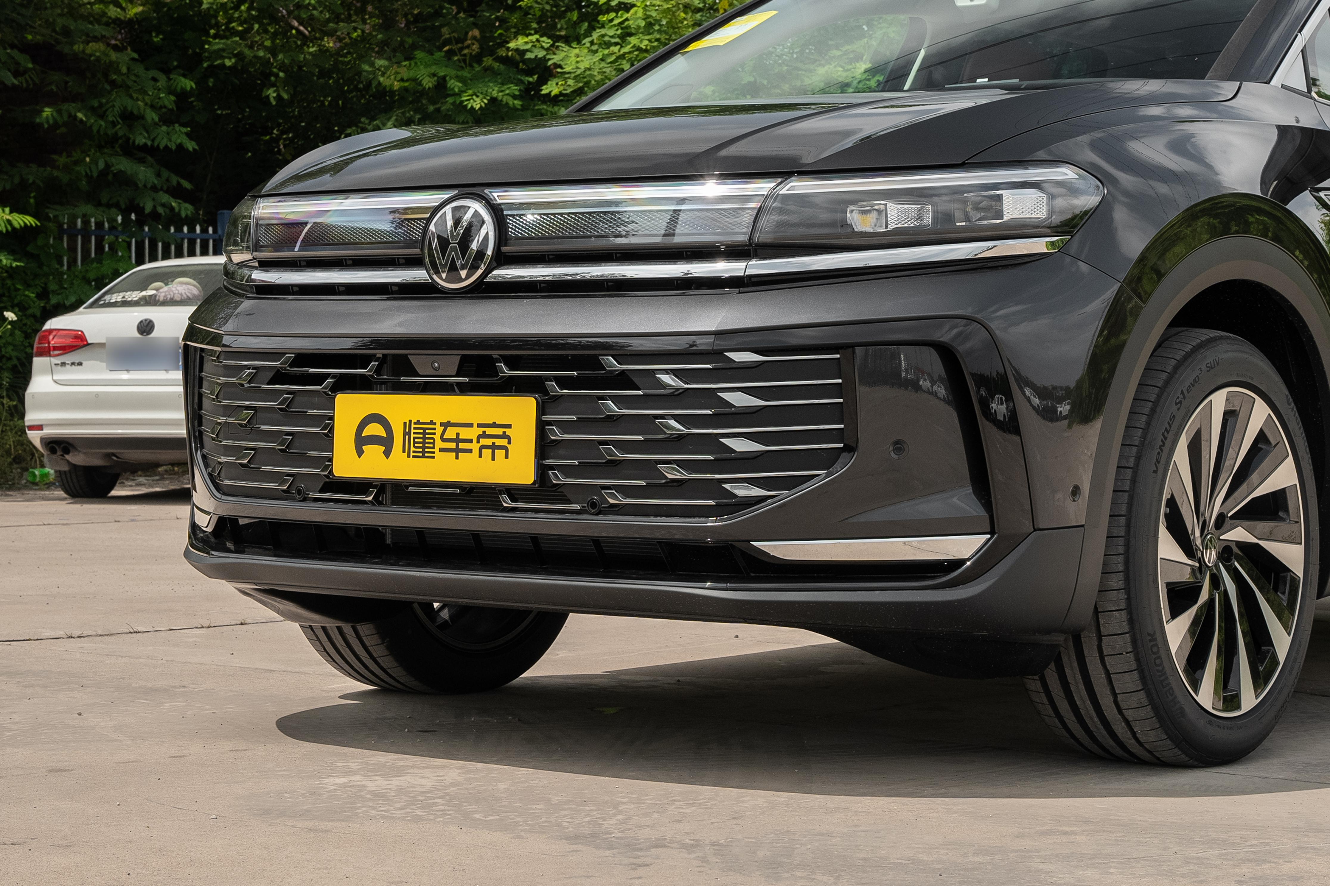 先来说说外观。全新揽境采用了大众最新一代设计语言,提供两种前脸风格,能满足不同人的喜好。“拓境锋锐” 风格把上进气格栅收窄了,下部有一大片黑色造型区域,还有垂直导流槽,再加上镀铬装饰,从视觉上把车的宽度给拉宽了,看着很大气。“R-Line 驭风运动” 风格就更具动感,以 X 型运动元素为核心,有大面积高亮黑封闭网状结构,还有夸张的空气动力学套件,开在路上回头率肯定不低。它还配备了上下贯穿式日行灯,中央饰板把双透镜大灯连接起来,搭配可发光的 LOGO,晚上一亮,辨识度极高。